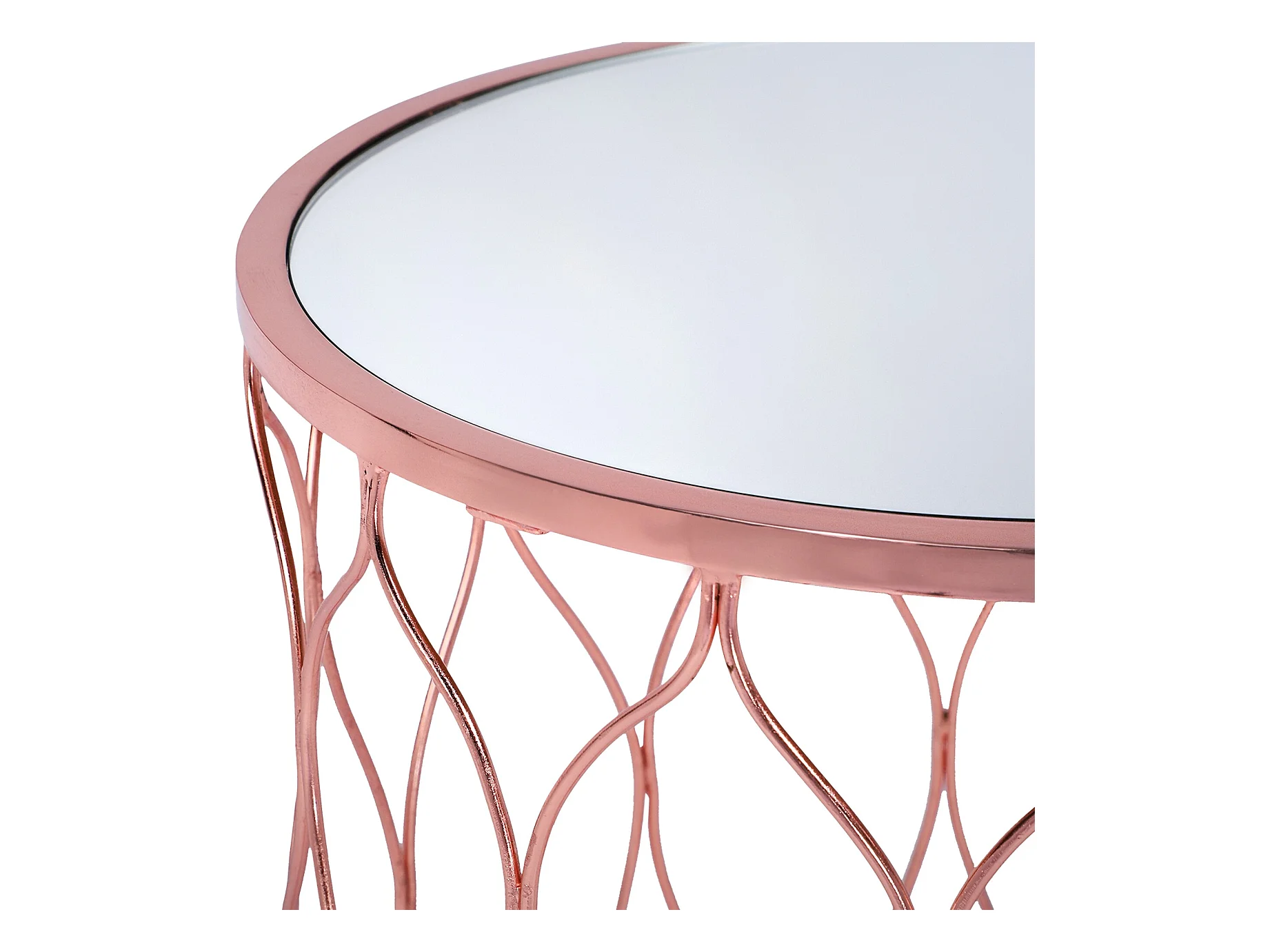 WOMO-DESIGN Set Chicago 2x Mesa auxiliar lateral Ø40/45 cm mesita redonda de cristal espejado y metal color cobre para salón, estilo ligero y aireado