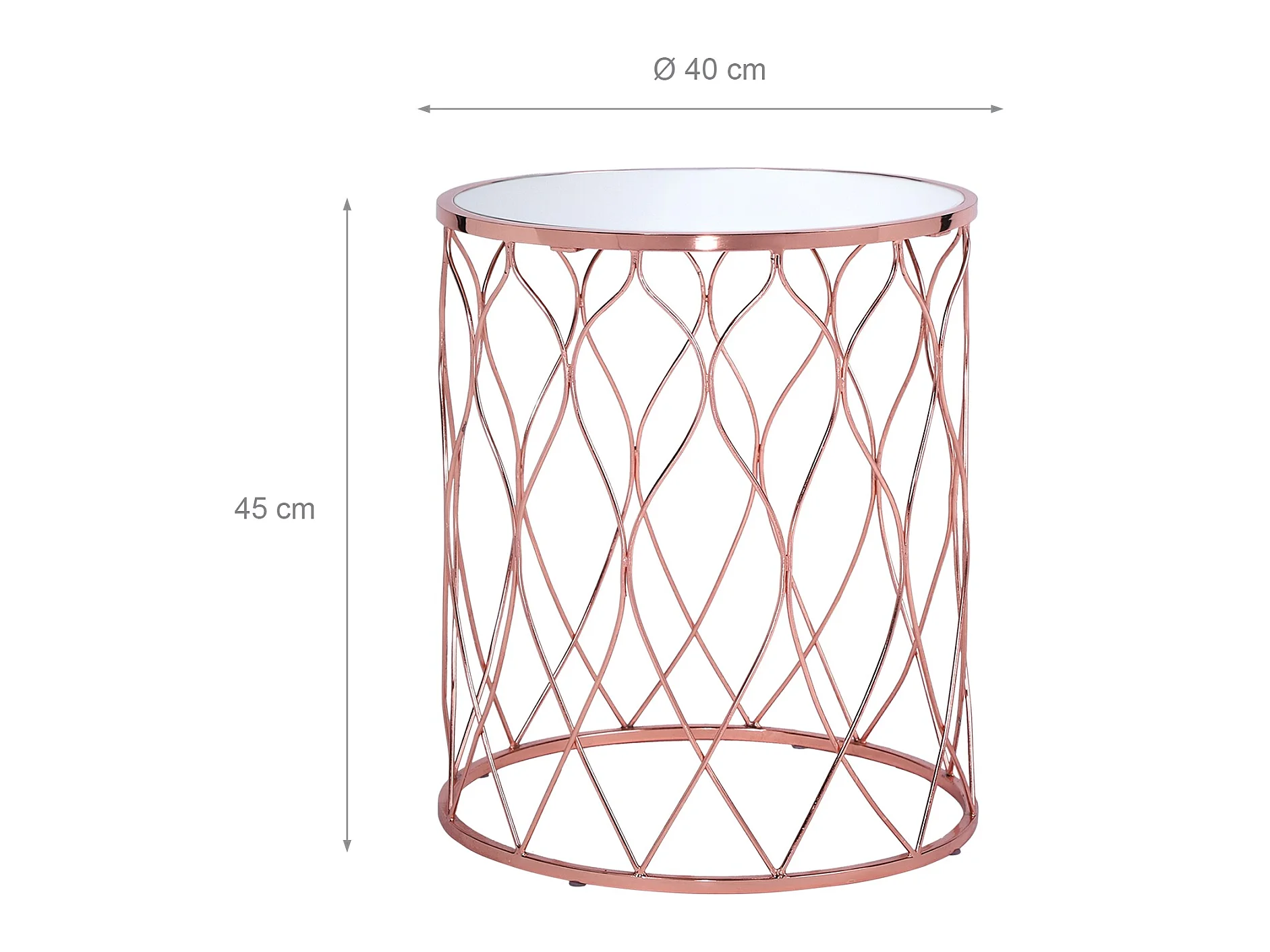WOMO-DESIGN Mesa auxiliar lateral Houston Ø43x45cm mesita de centro redonda de cristal y metal color cobre para salón sofá, estilo ligero y aireado