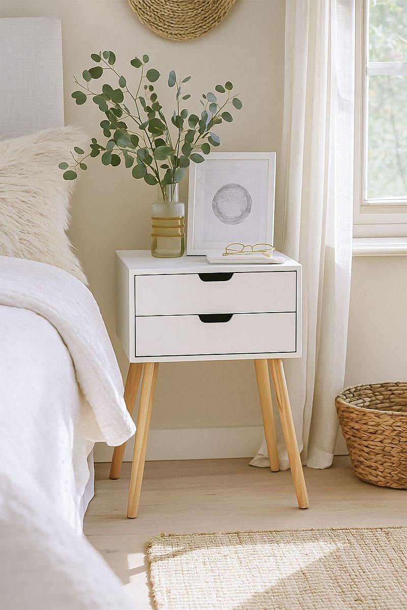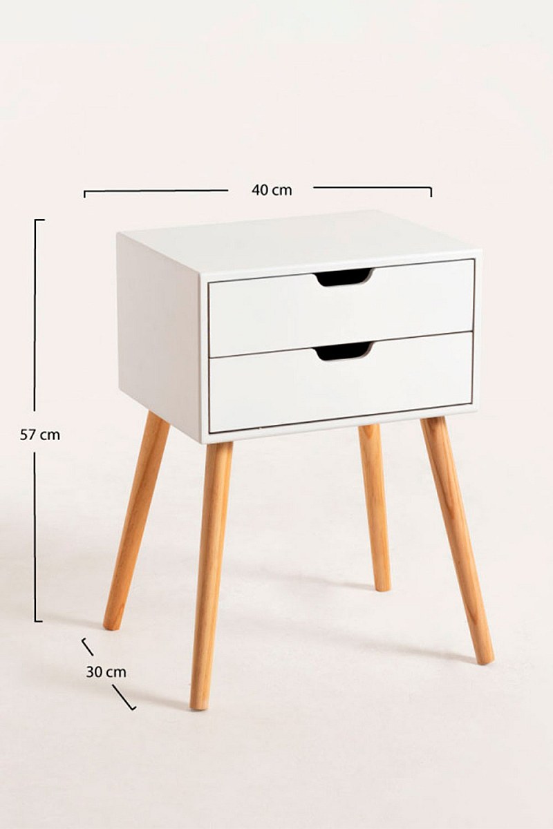 Mesas Auxiliares - Mesa Nuit 2 Cajones - Blanco