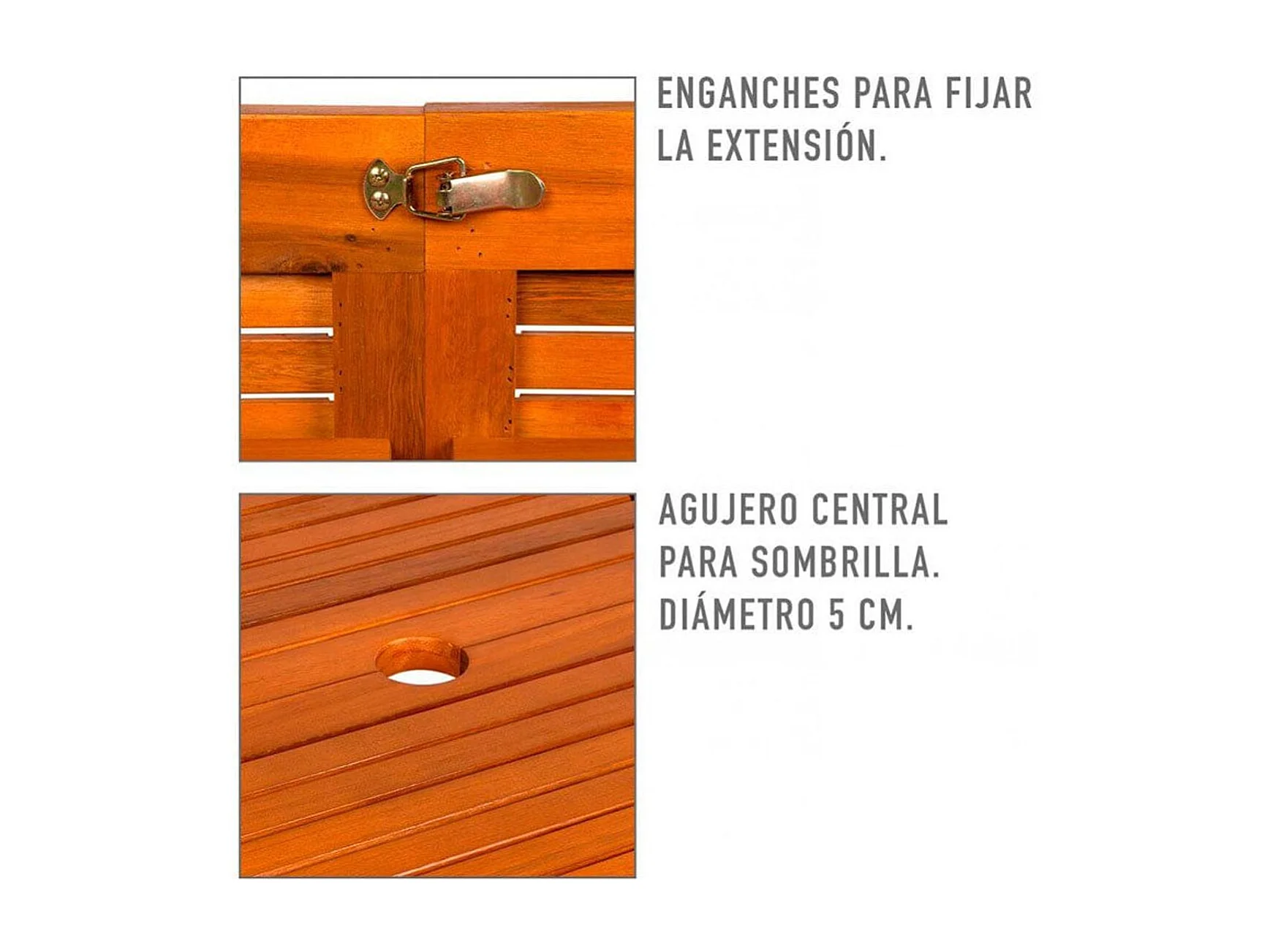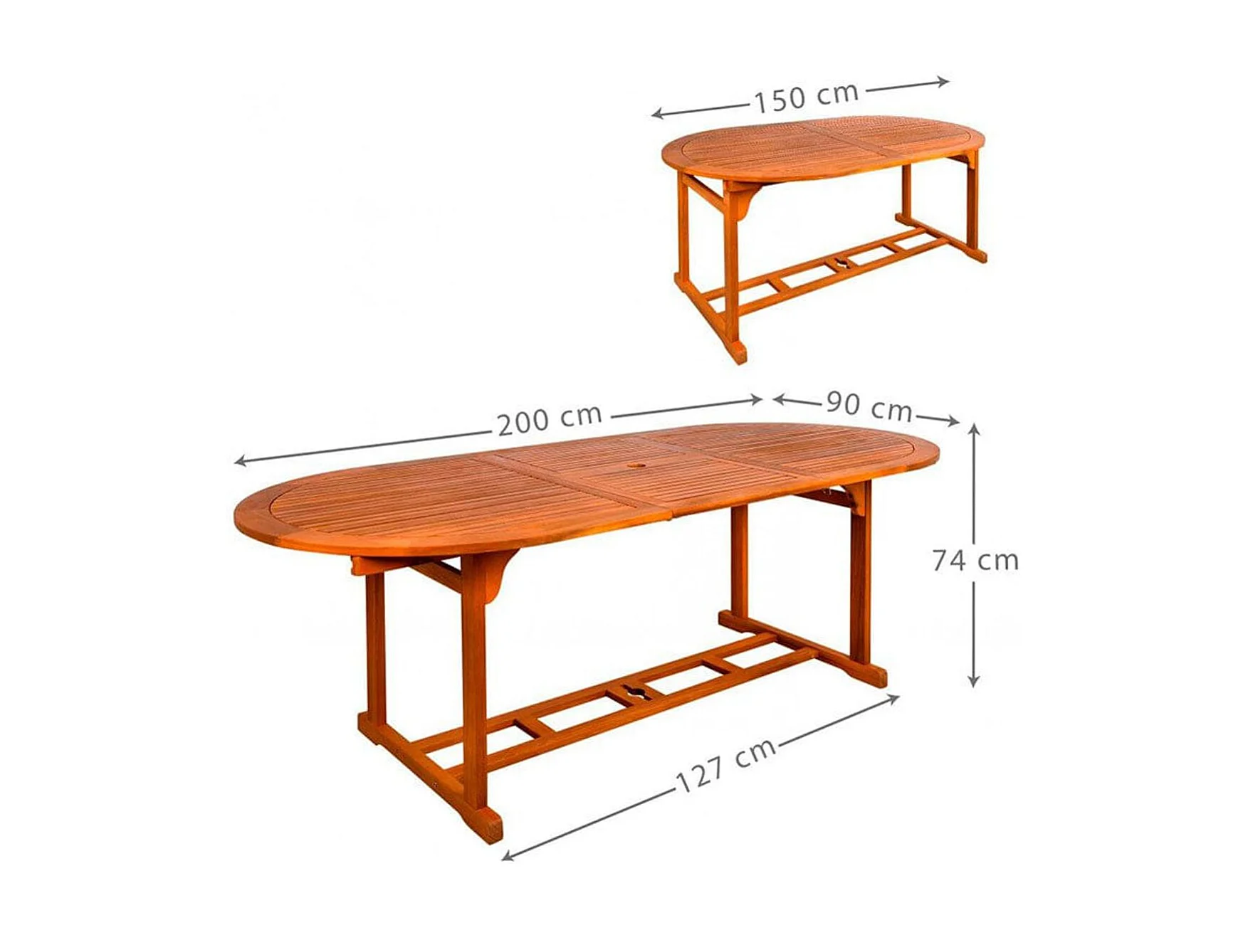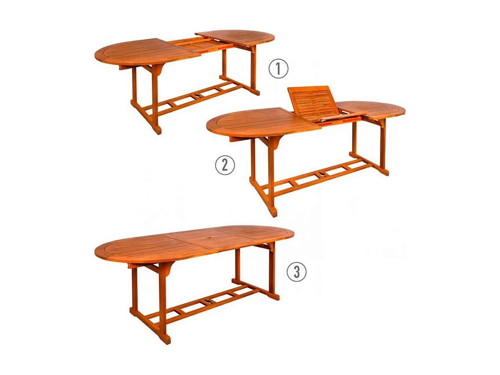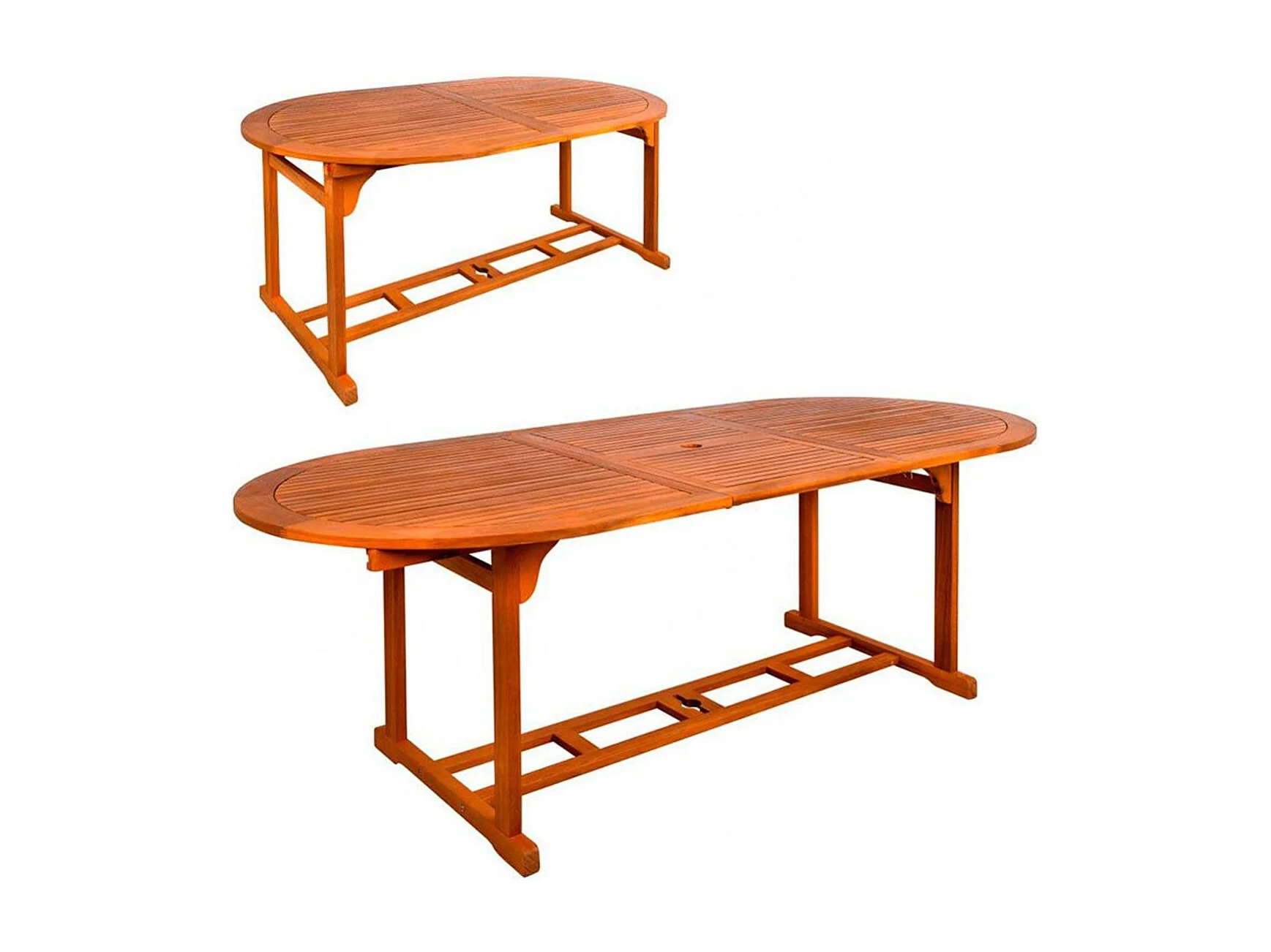 Mesa ovalada de exterior Aktive Garden extensible con agujero de sombrilla natural 74x150-200x90 cm