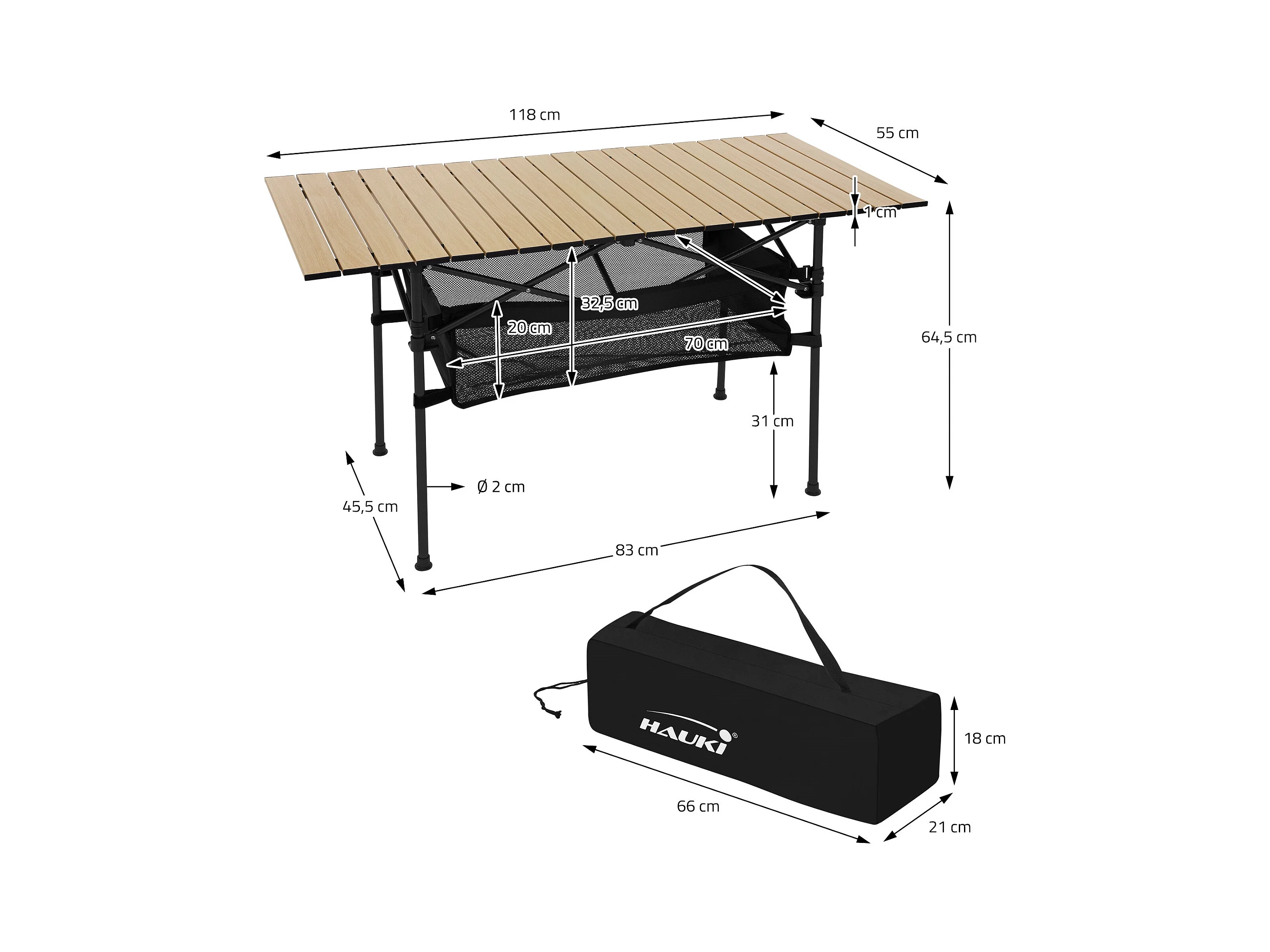 Mesa plegable de camping 118x55x64,5 cm de aluminio beige mueble multifuncional