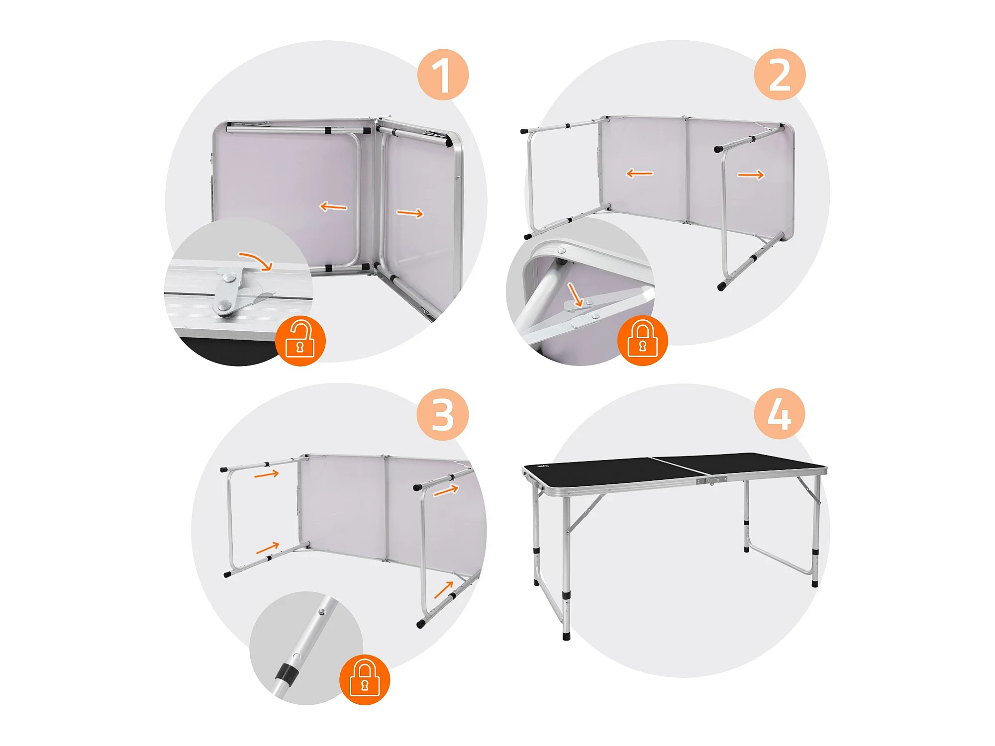 Mesa plegable Mesa de camping Mesa de jardín con asa de transporte Aluminio 120x