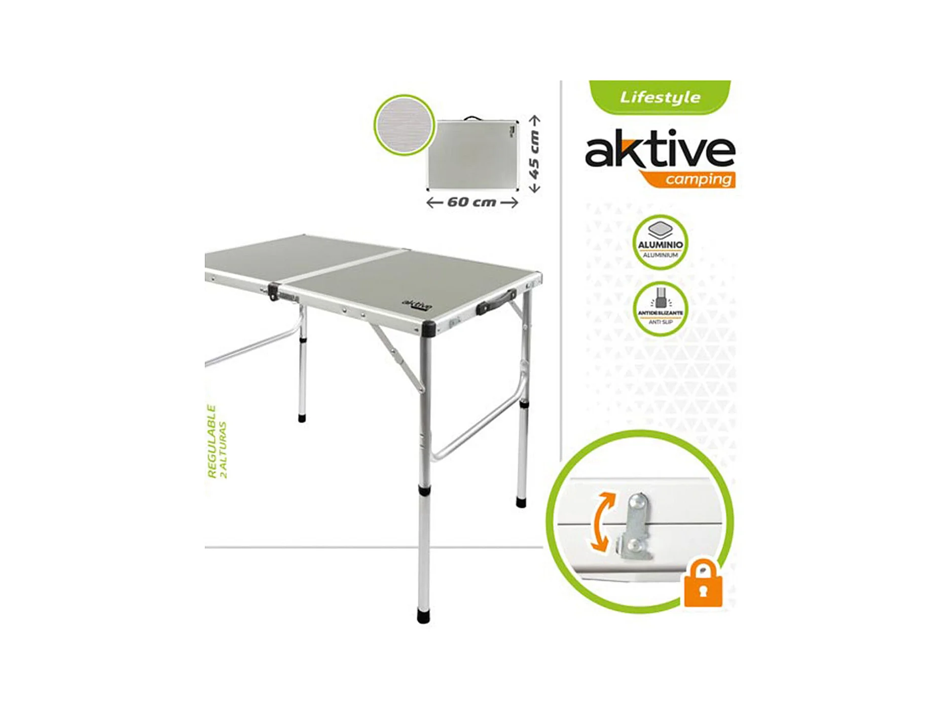 Mesa de camping Aktive diseño desmontable plateado 72x108x71 cm