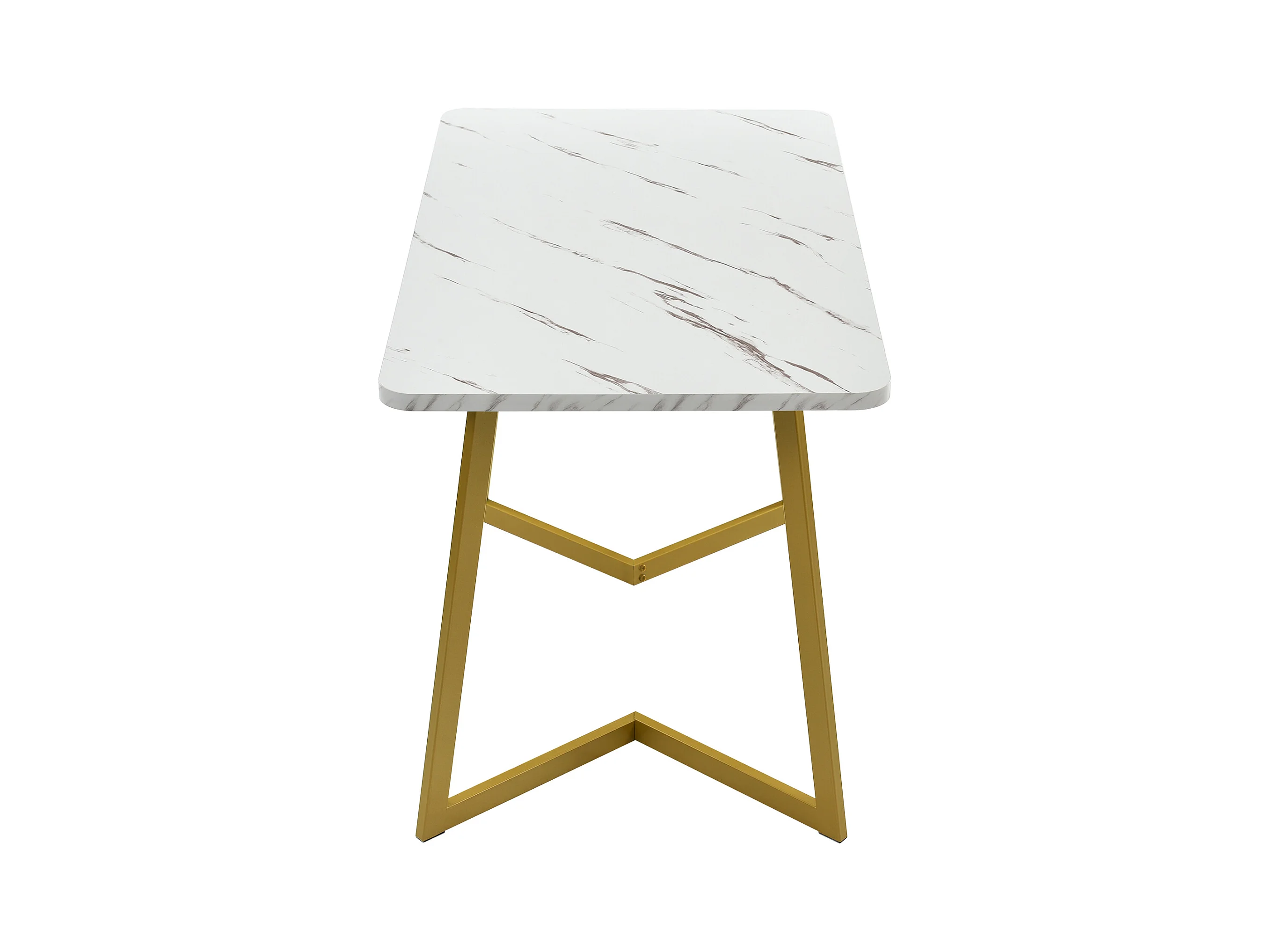 Mesa de comedor moderna 140x80cm, MDF blanco con patas de metal dorado, tablero de mármol (140x80x75 cm)