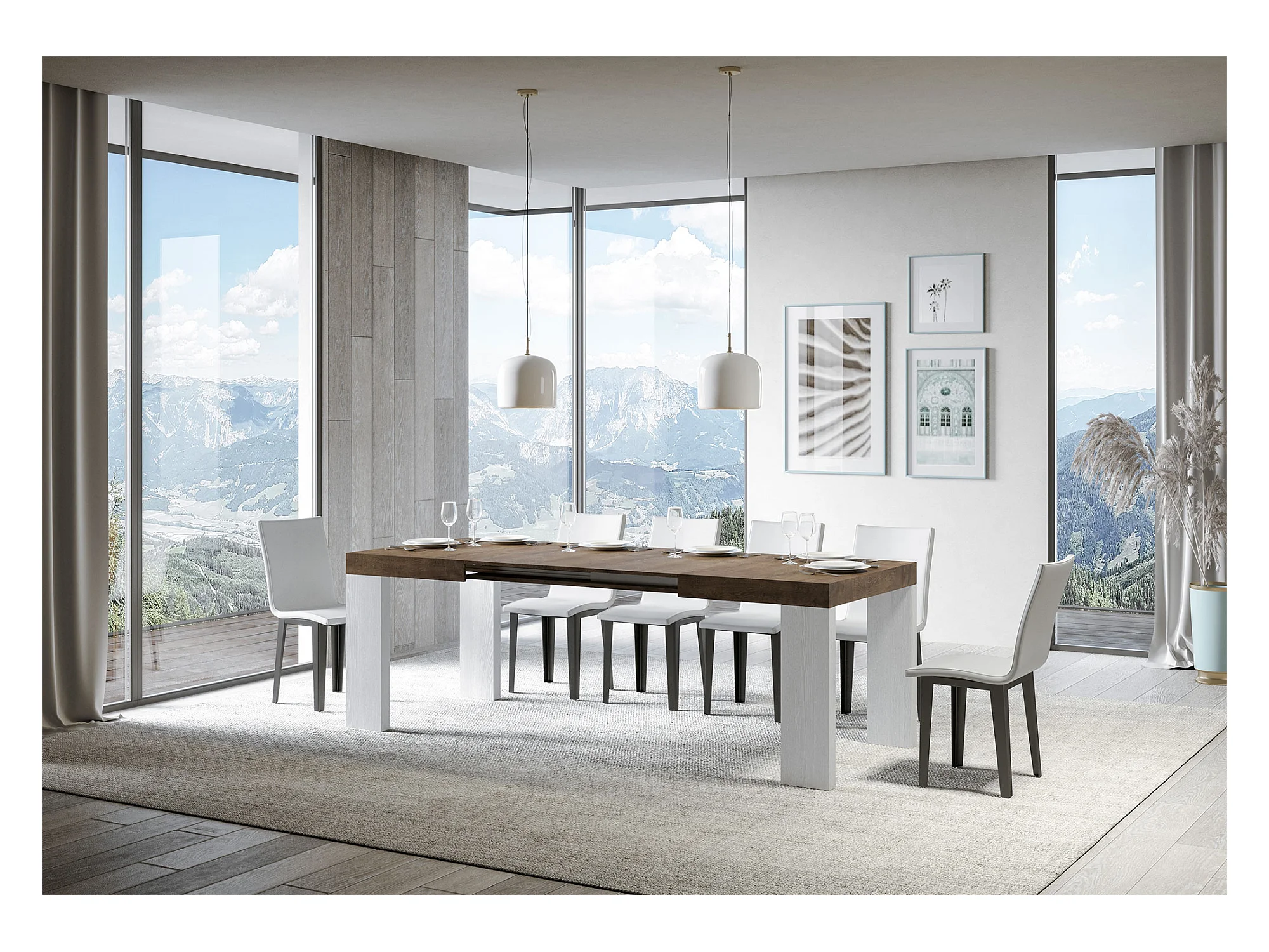 Mesa rectangular extensible madera blanca y nogal 130 a 234 cm Ribo-Soporte 4 pies
