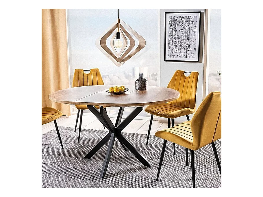 Mesa redonda 100 / 135 cm estilo madera y patas de metal Larry