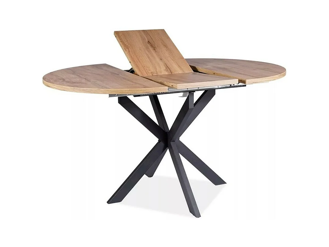 Mesa redonda extensible Larry de 100 cm con patas de madera y metal negro