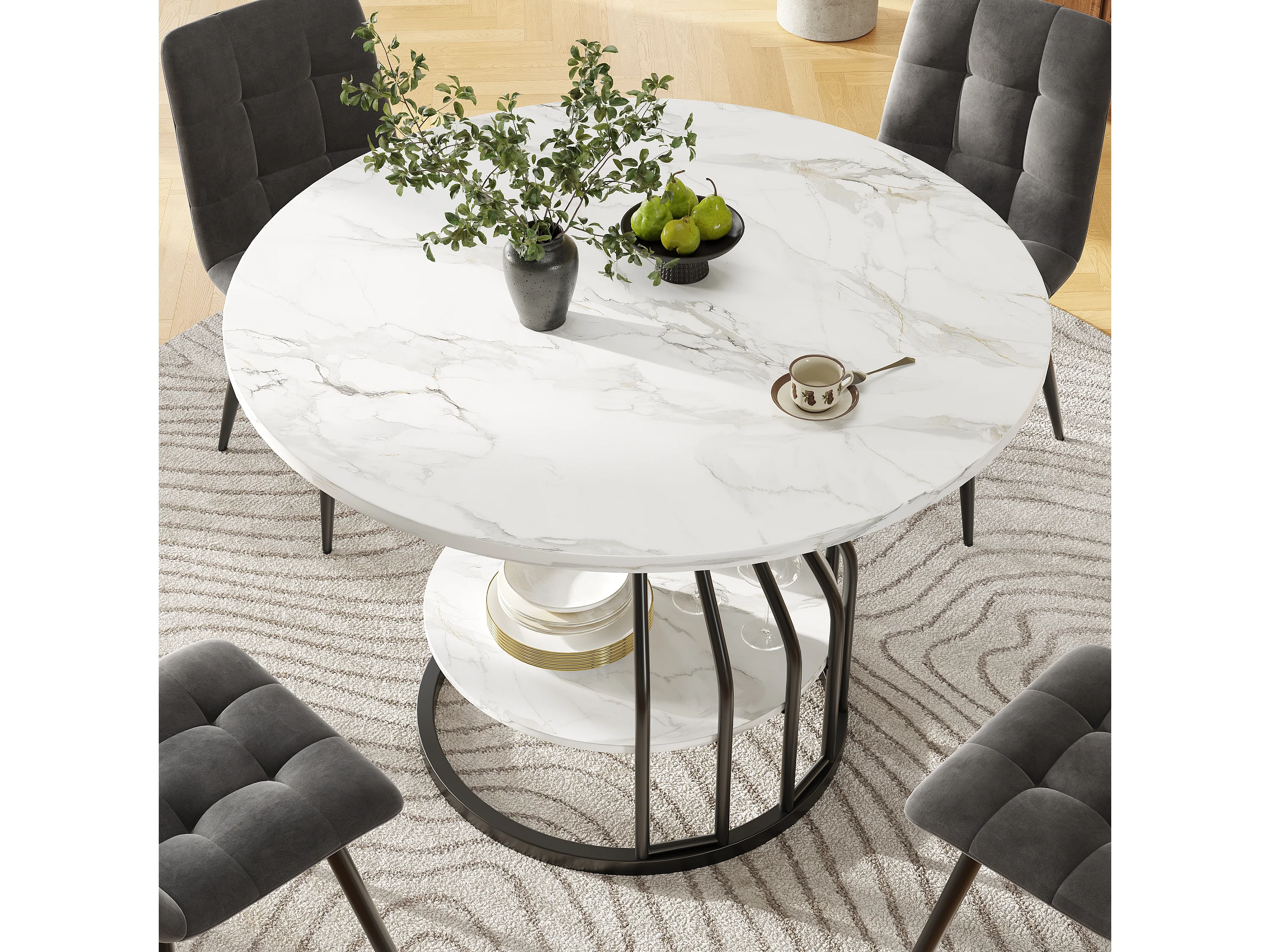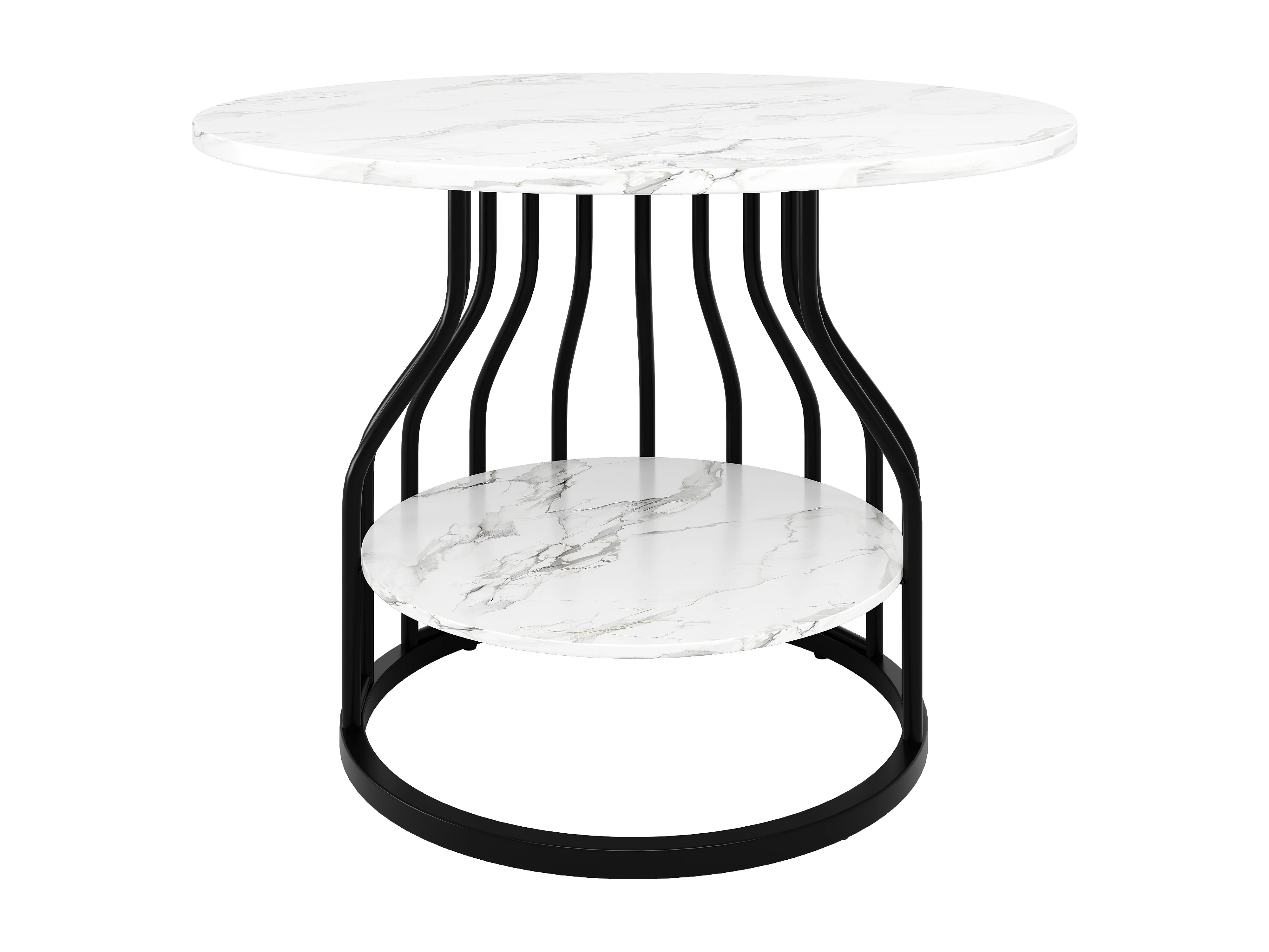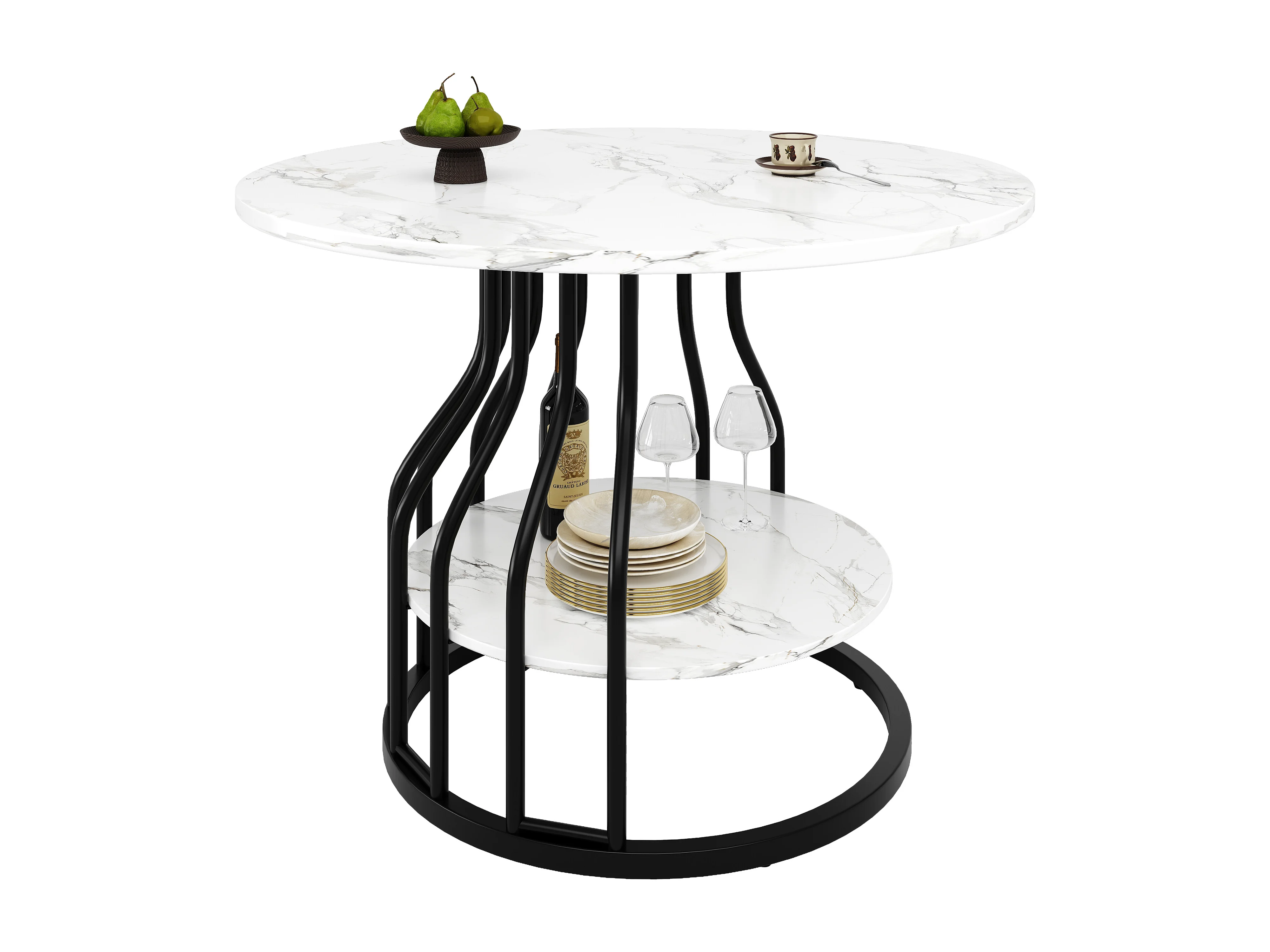 Mesa redonda 80×80×76cm MDF mármol almacenaje metal cocina salón negro