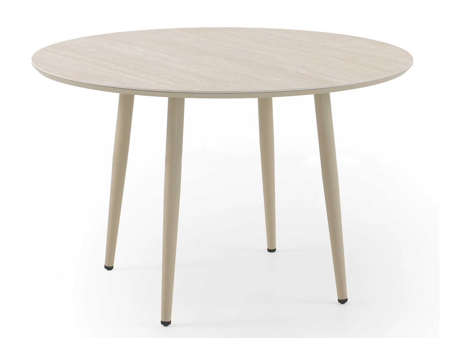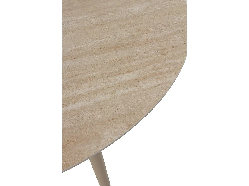 Mesa redonda de aluminio y tapa de cerámica travertino