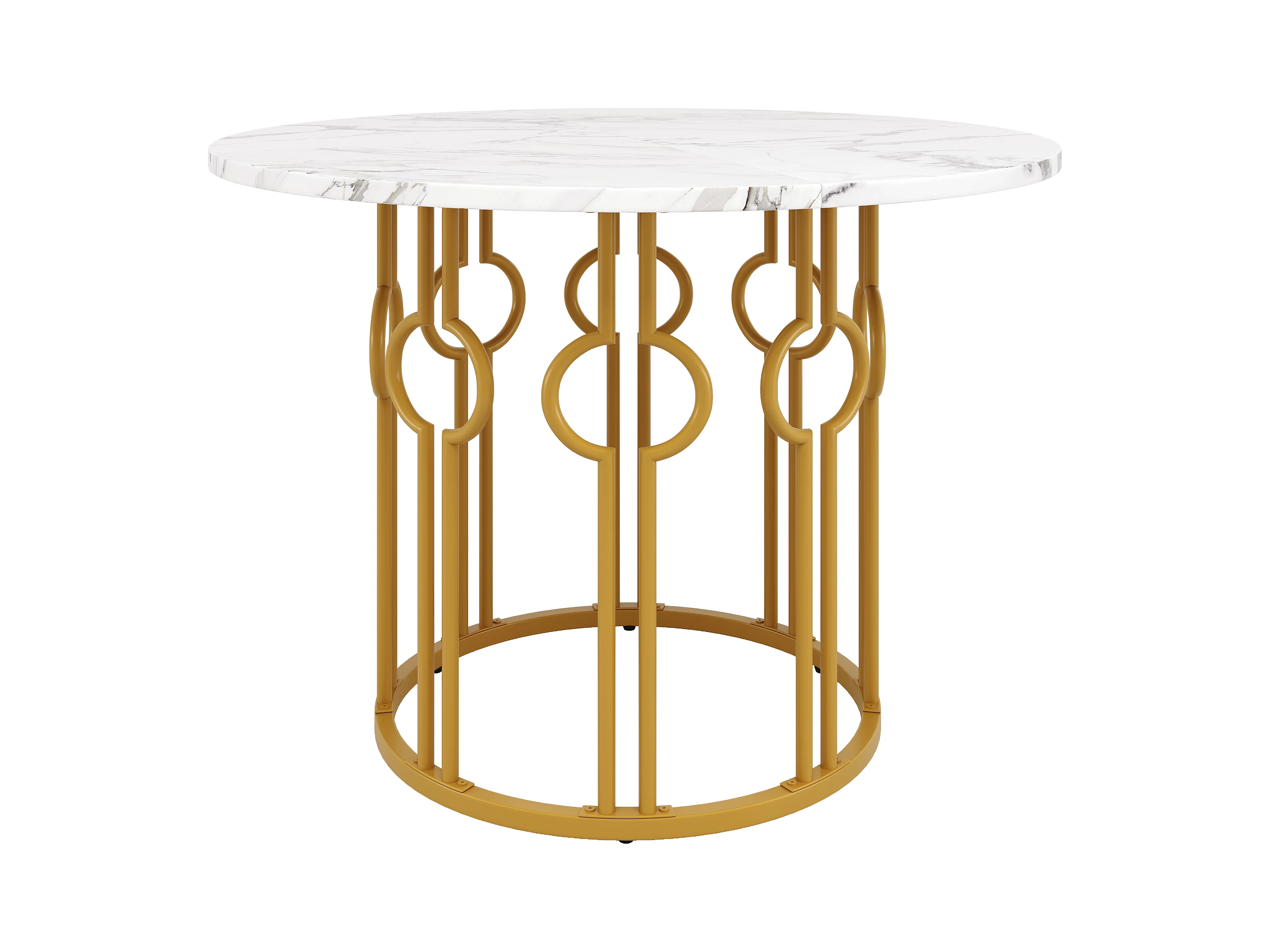 Mesa de comedor redonda de MDF con tablero efecto mármol y base de metal dorado para 4 personas (80 x 80 x 76 cm)