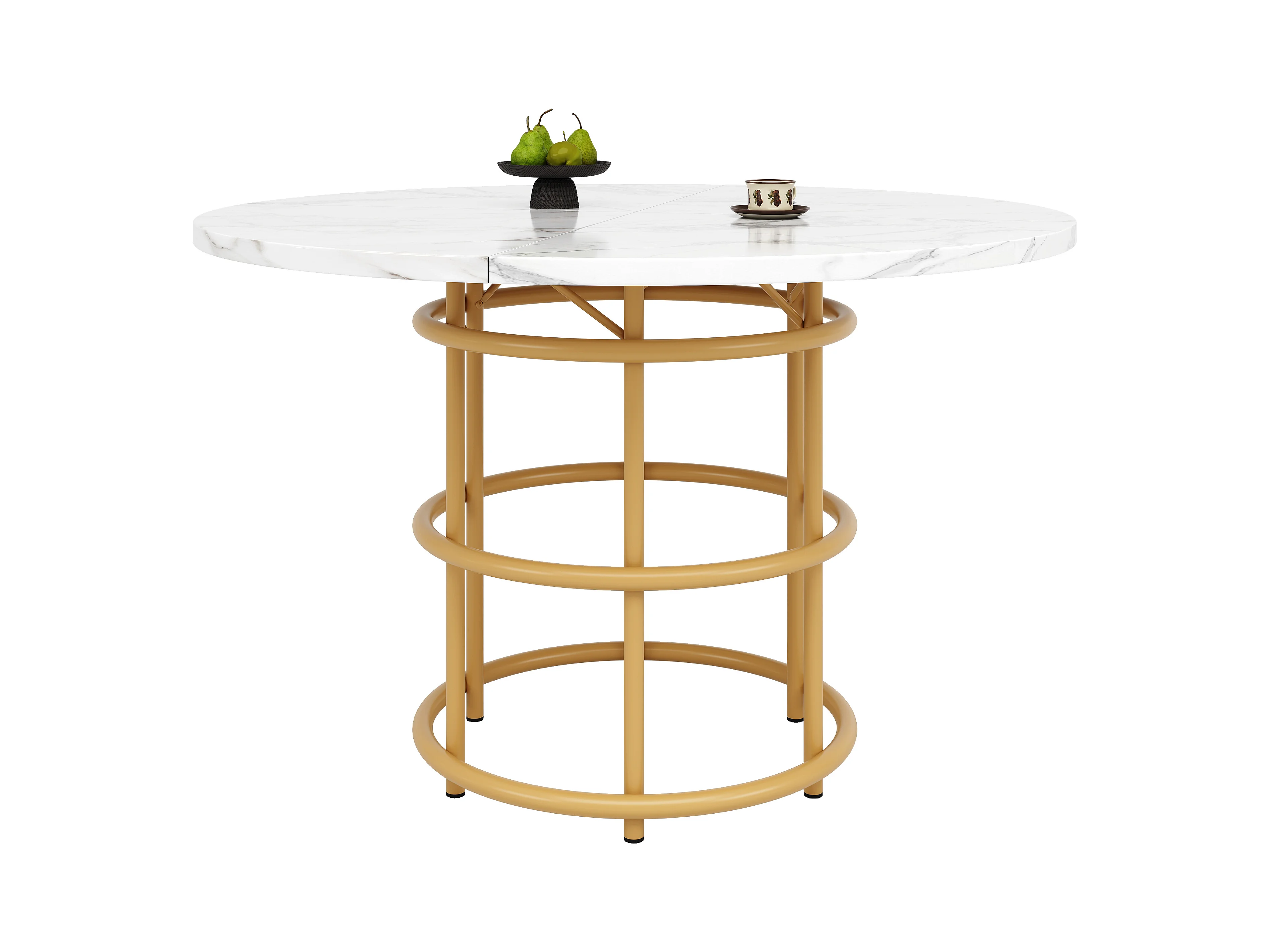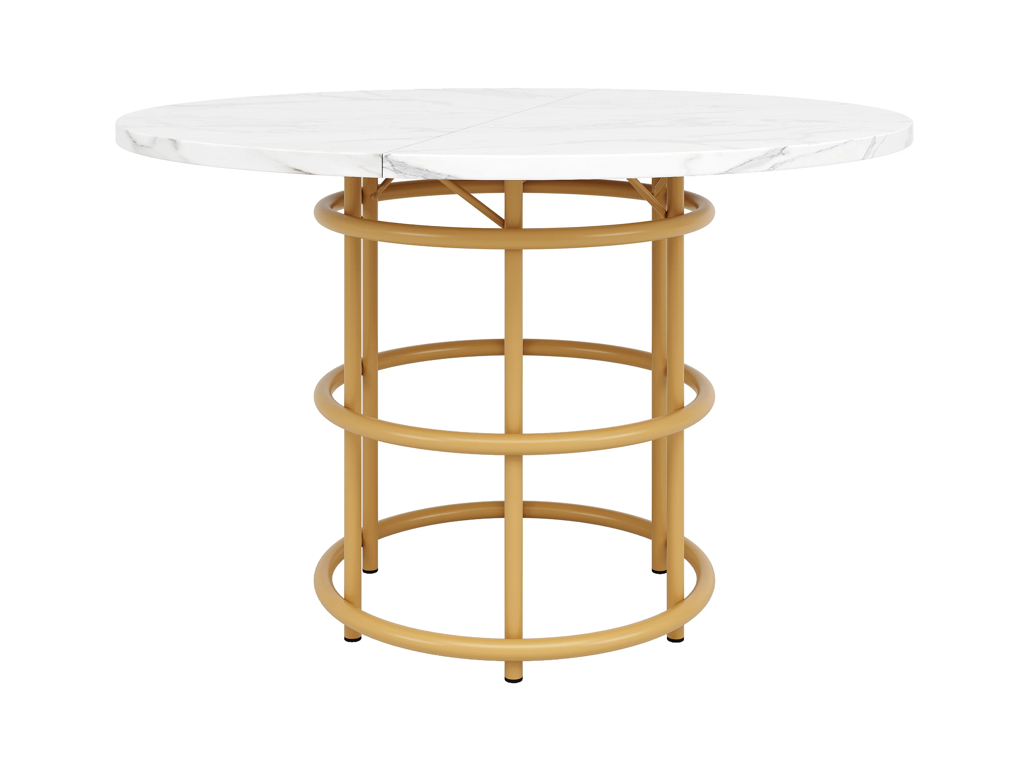 Mesa redonda 80×80×76cm MDF imitación mármol metal dorado salón cocina