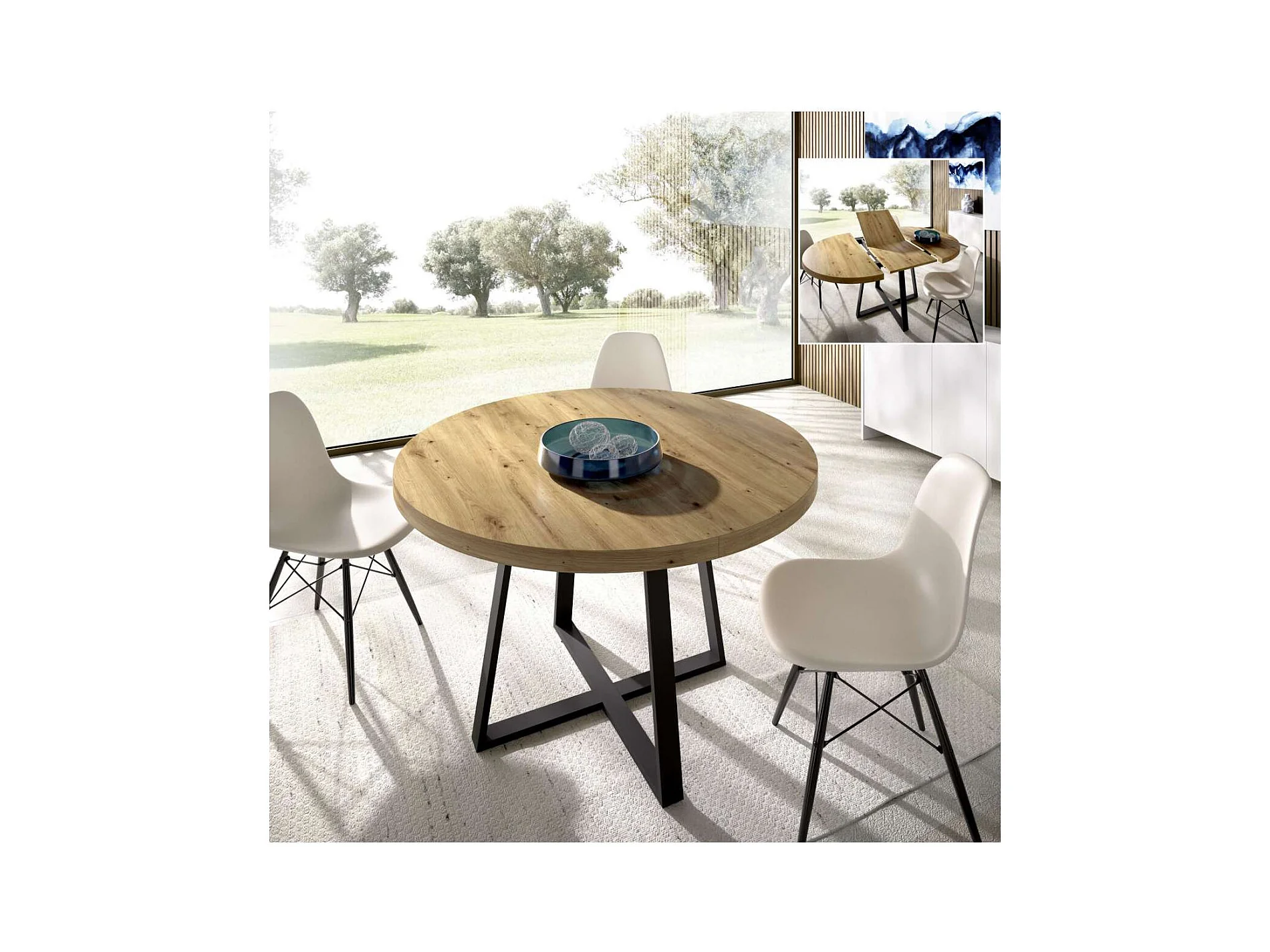 Mesa redonda extensible Berg roble nordish patas negras 76 cm(alto) 100cm(ancho) 100-140-1
