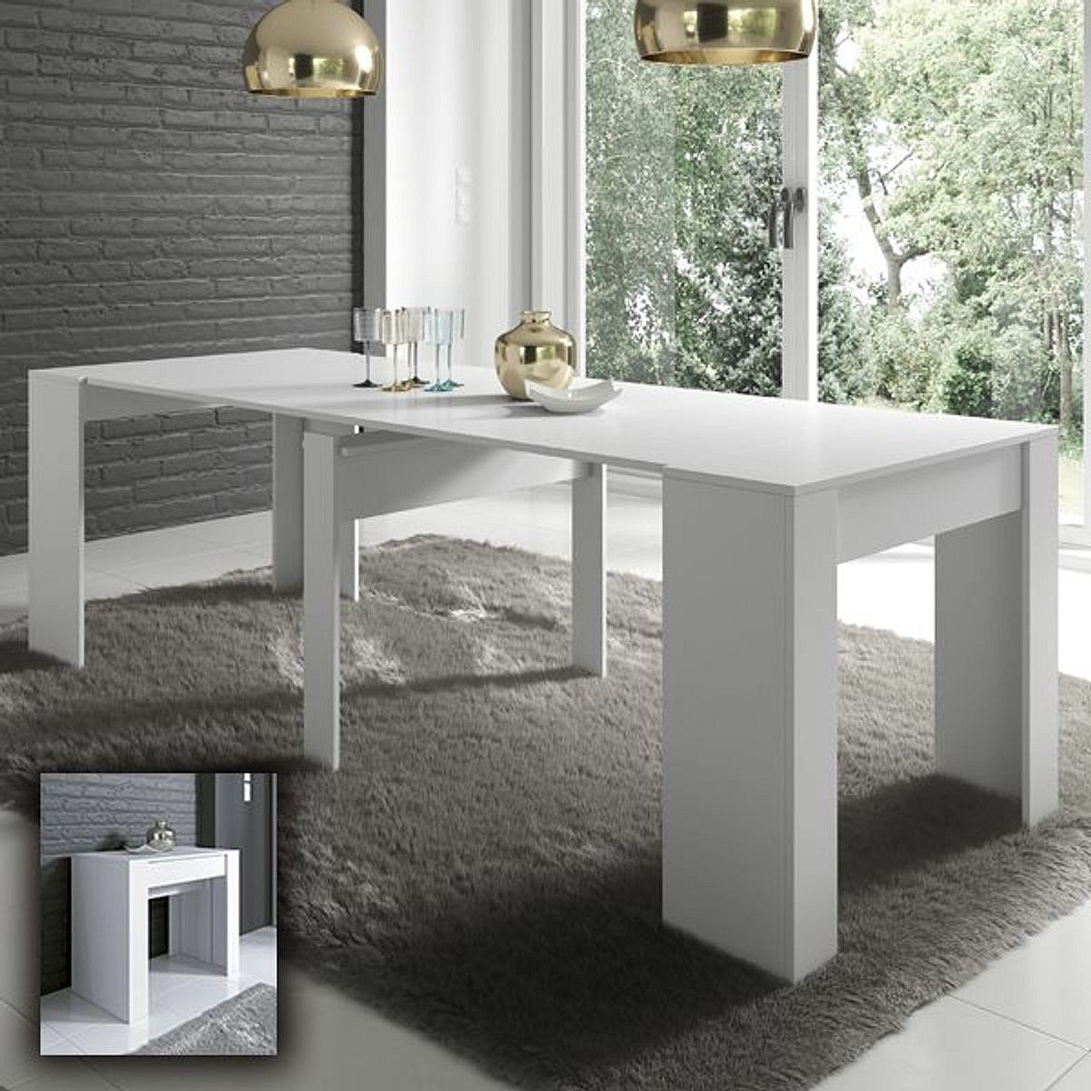 Mesa de comedor extensible, diseño moderno, aglomerado, blanco (110x40x72 cm)