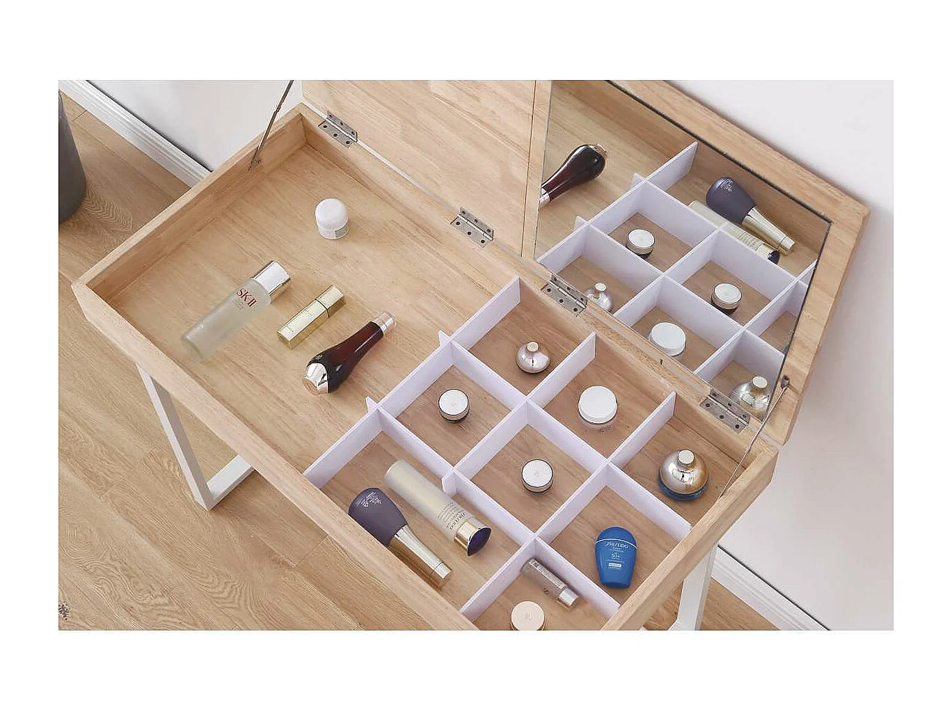Mesa Tocador con espejo Pretty acabado roble nordish con blanco 76 cm(alto) 100 cm(largo)