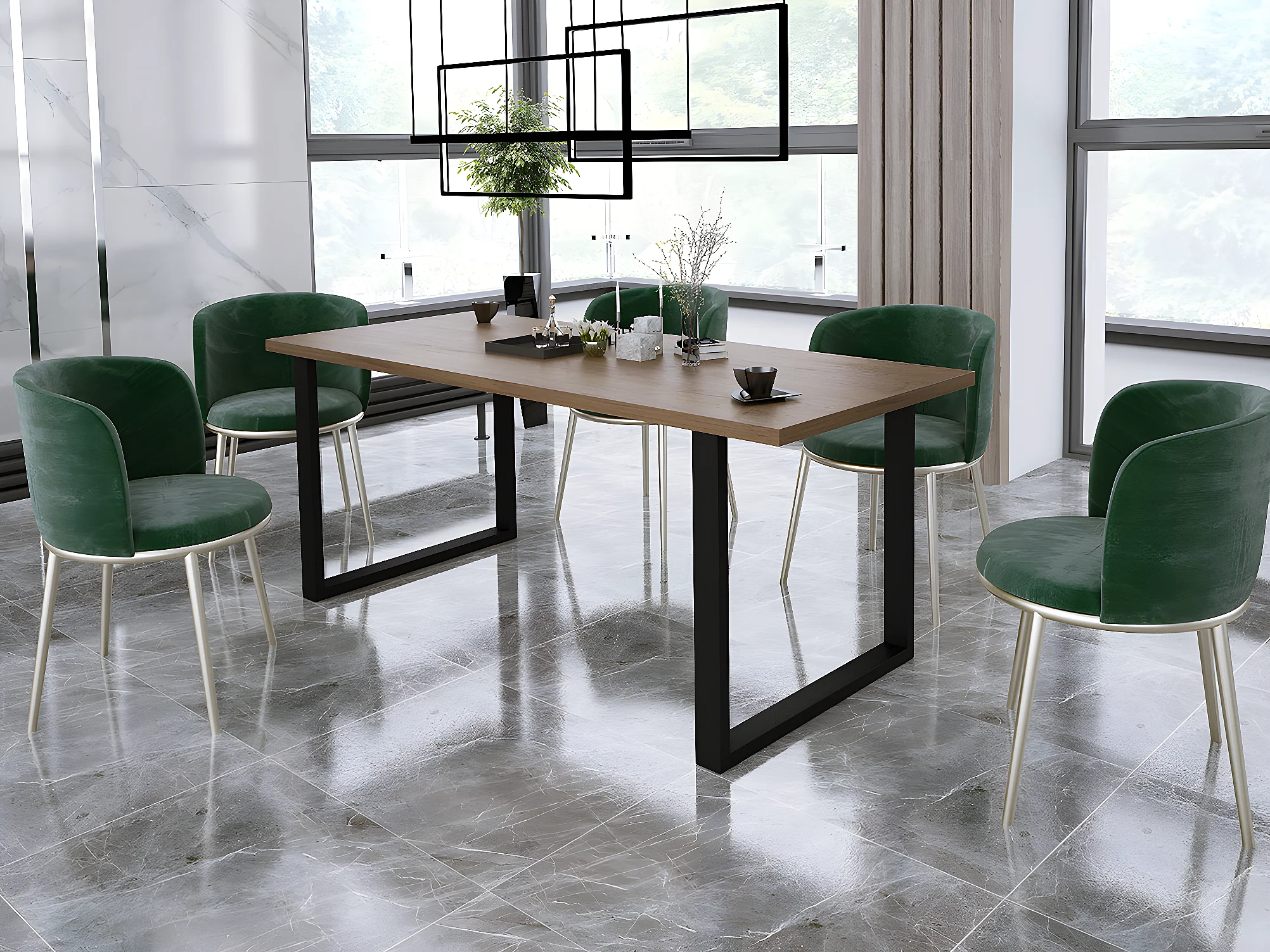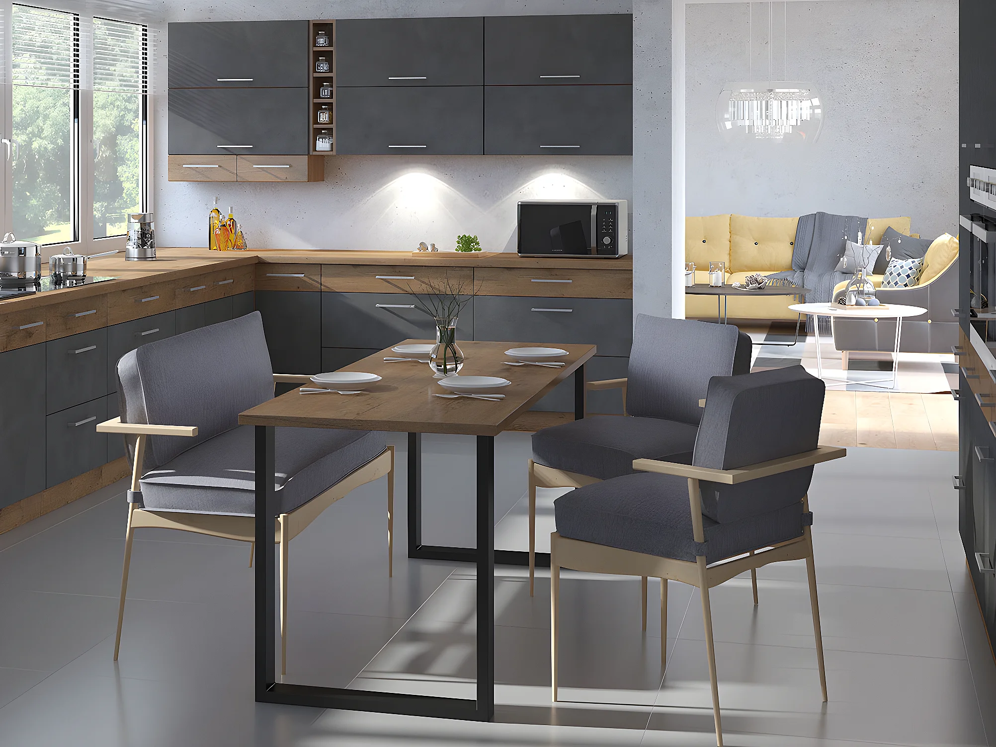 Mesa Tucson 138, Negro|Roble lancelote, 75x67x185cm, Aglomerado laminado, Metal