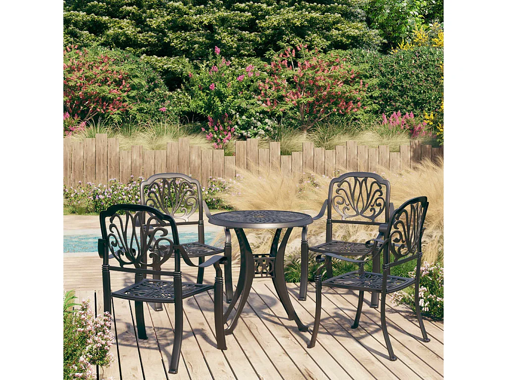 Mesa y sillas de bistró 5 piezas aluminio fundido negro