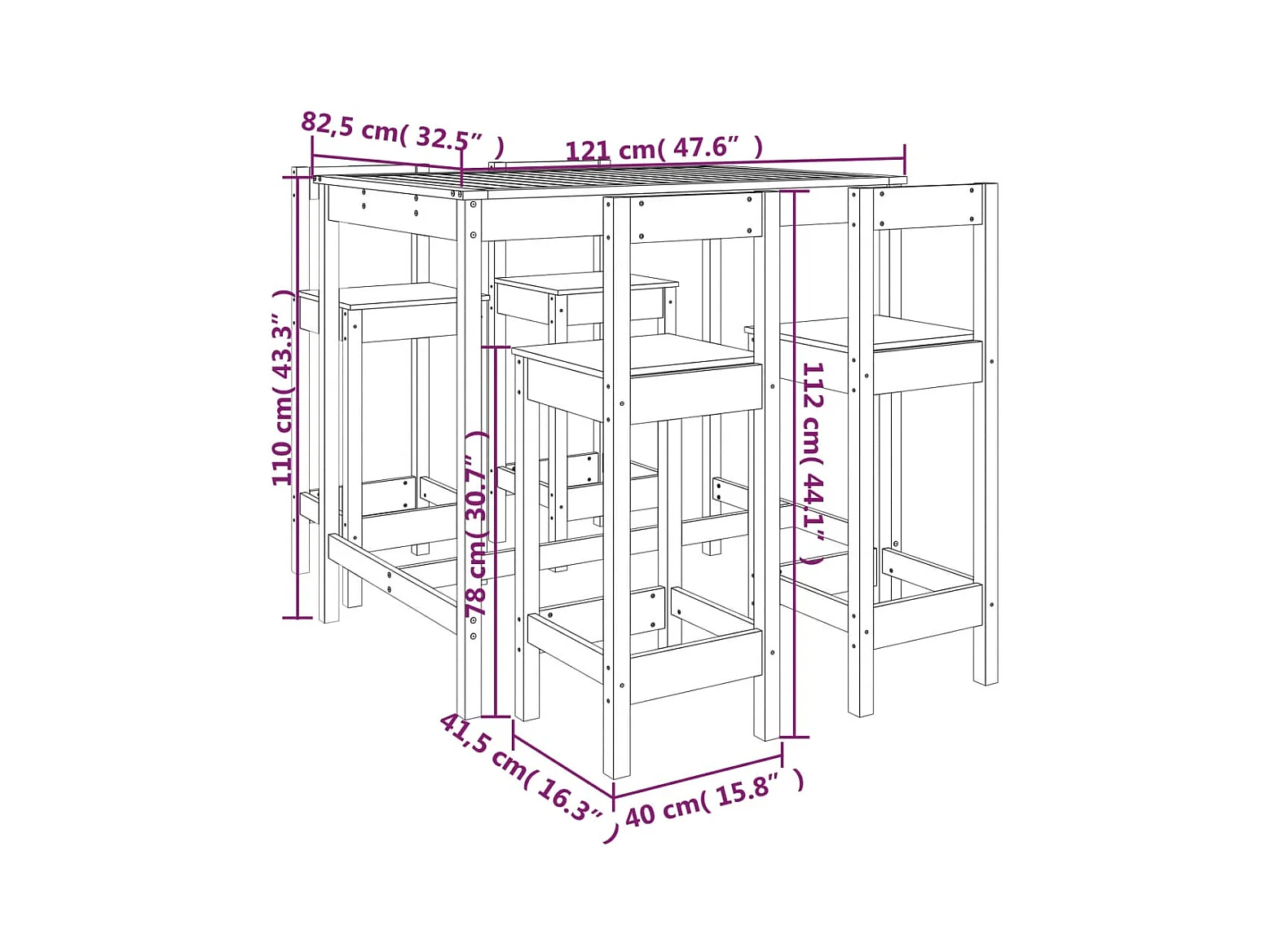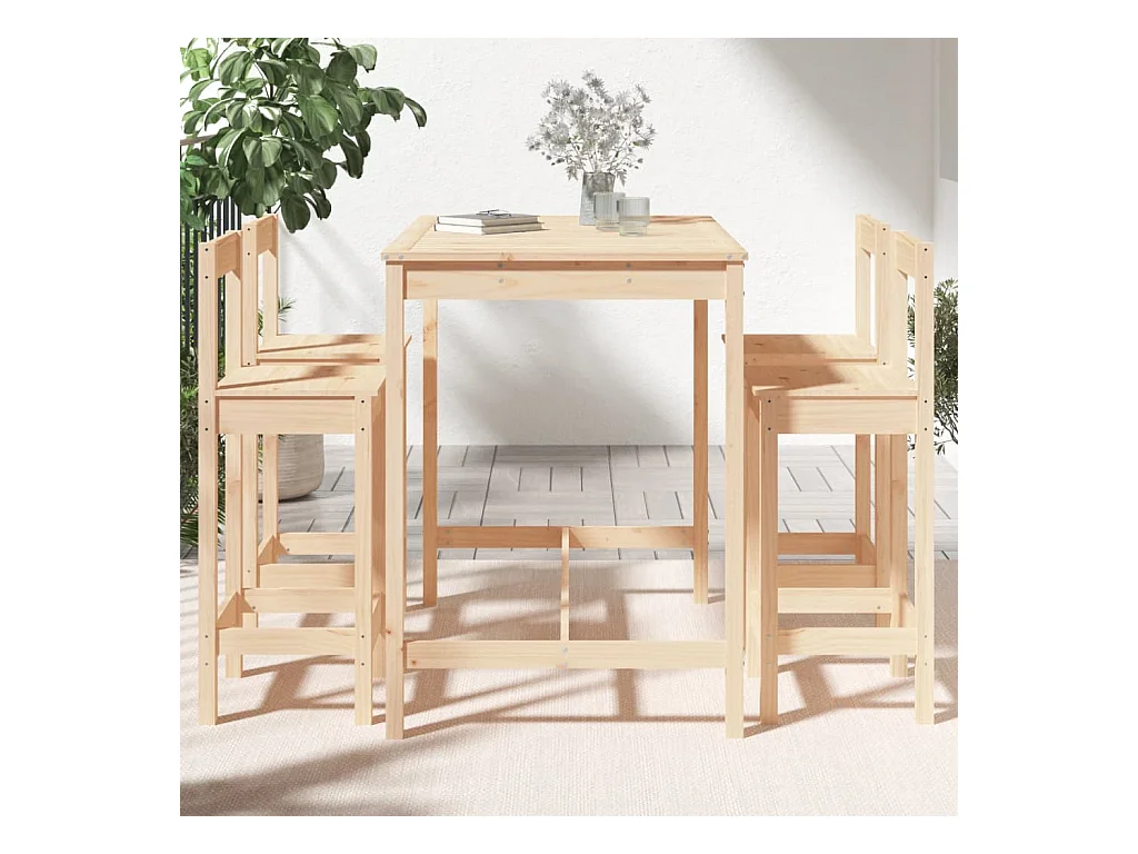 Set de mesa y taburetes altos jardín 5 pzas madera maciza pino