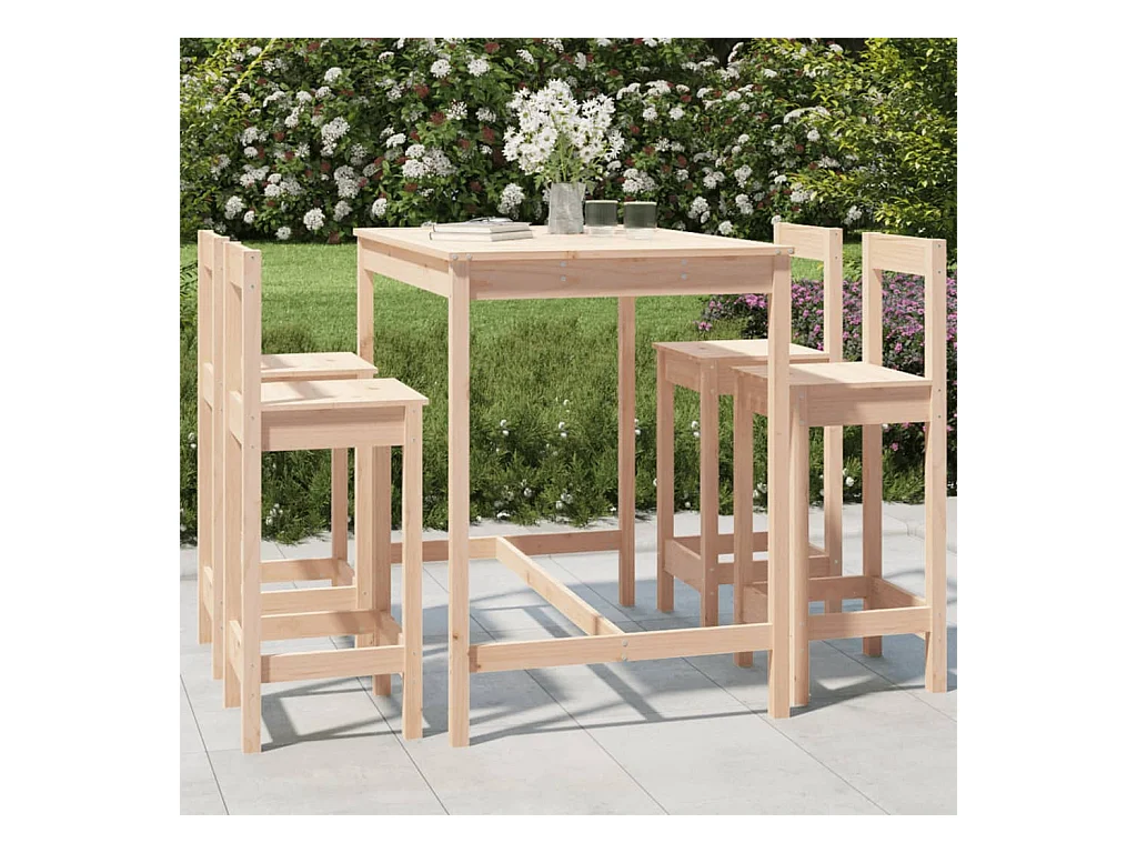 Set de mesa y taburetes altos jardín 5 pzas madera maciza pino ES177313