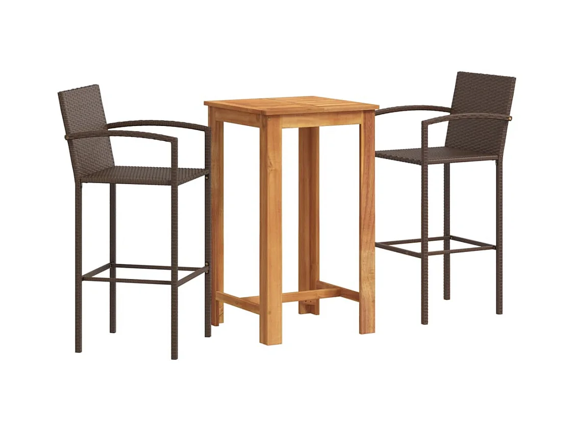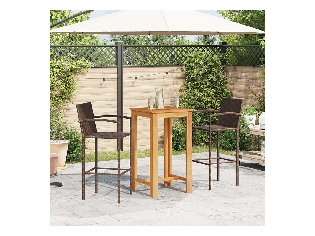 Mesa y taburetes de jardín 3 pzas madera acacia ratán PE marrón ES806134
