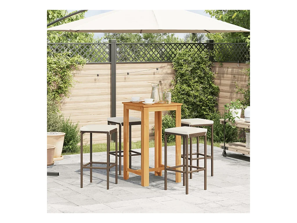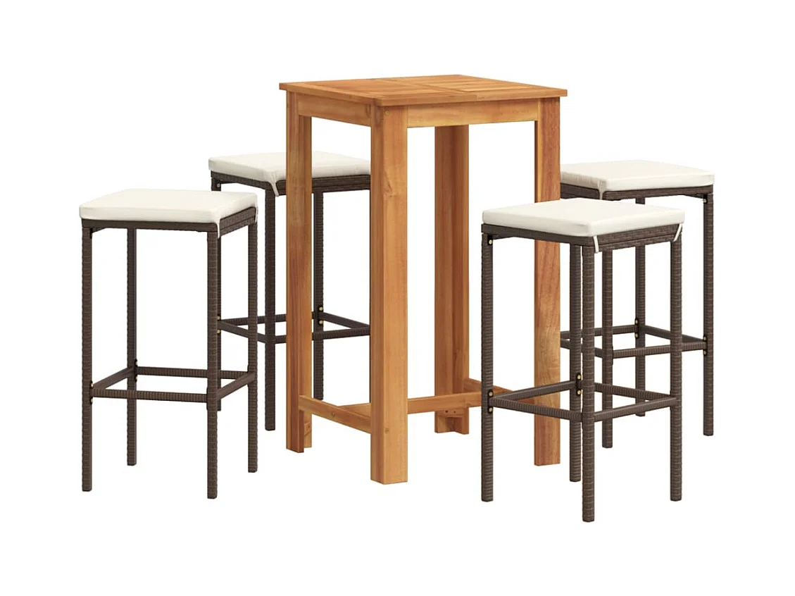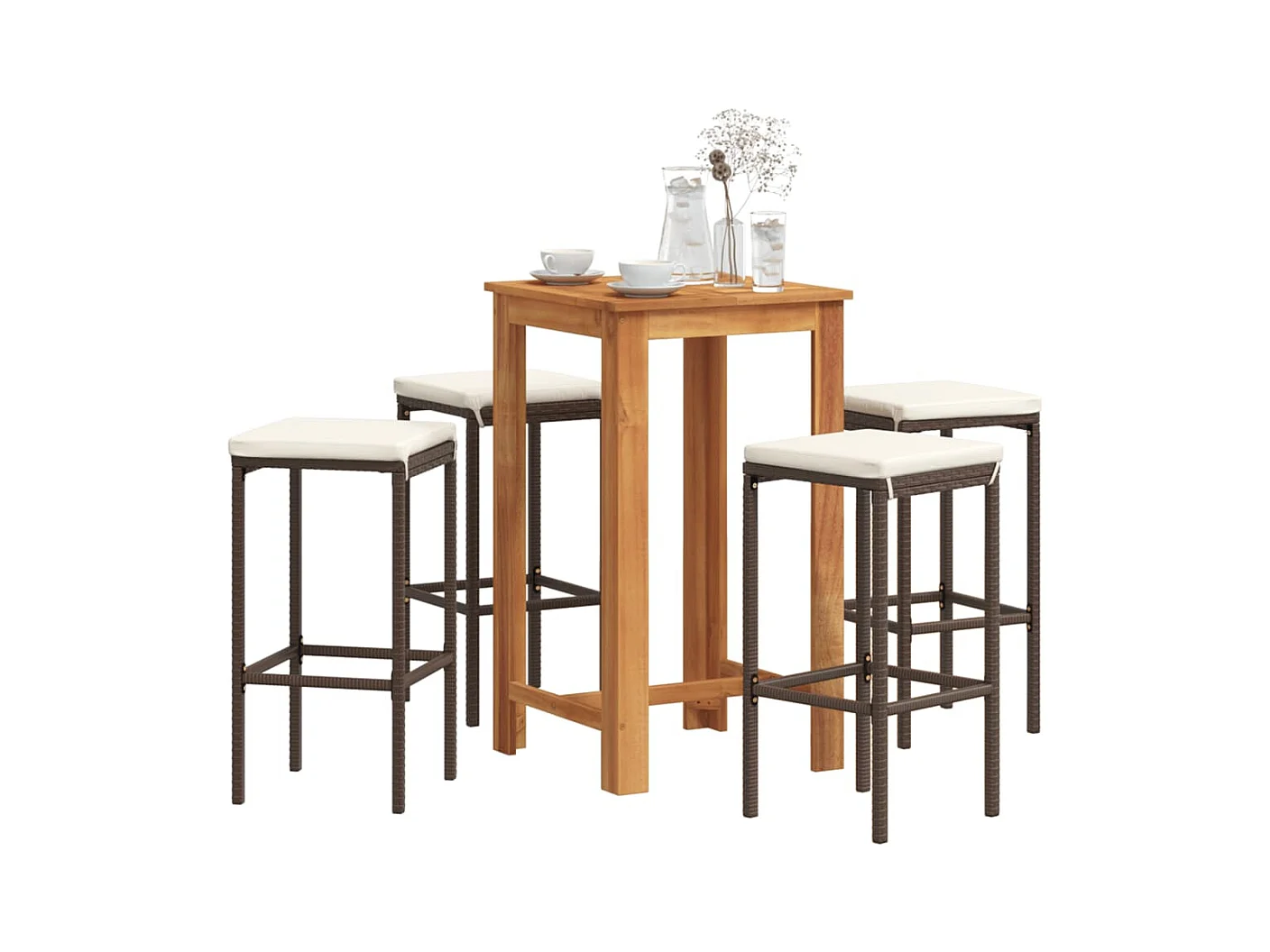 Mesa y taburetes de jardín 5 pzas madera acacia ratán PE marrón ES507115