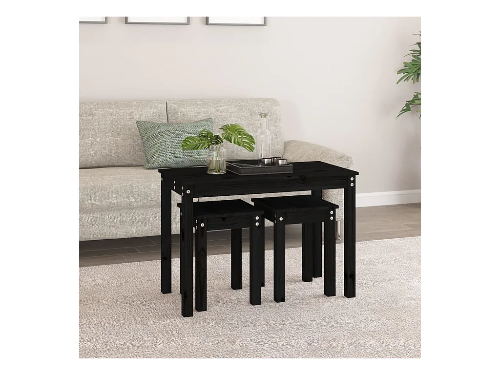Mesas apilables 3 piezas madera maciza de pino negro ES758430