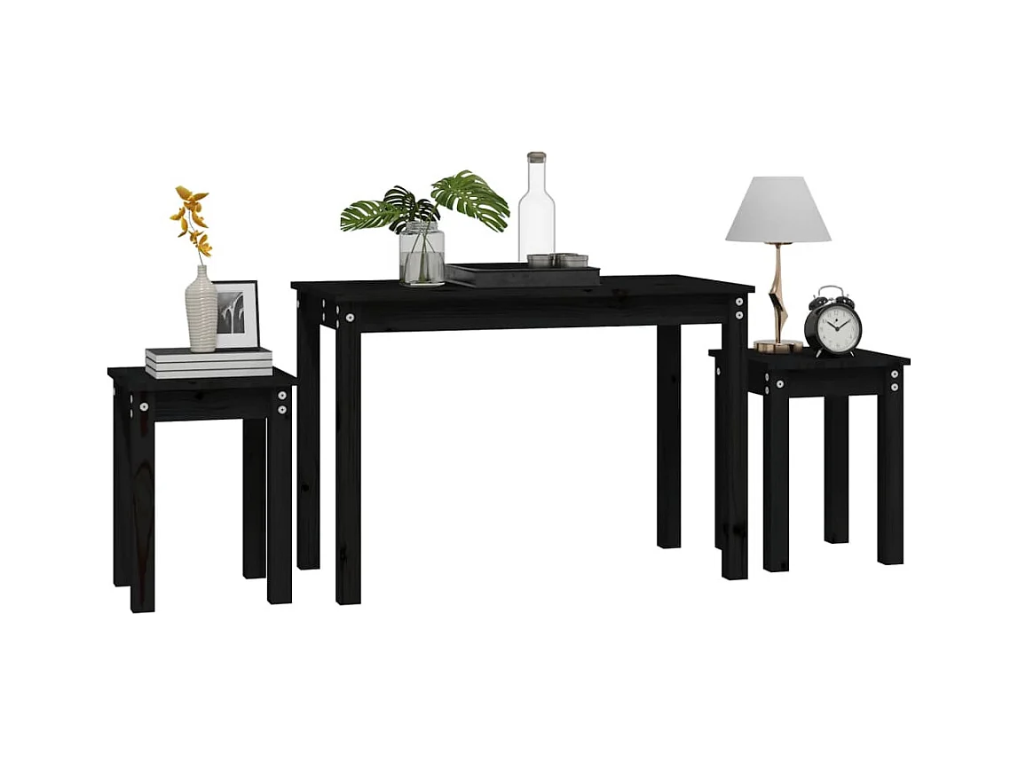 Mesas apilables 3 piezas madera maciza de pino negro ES830019