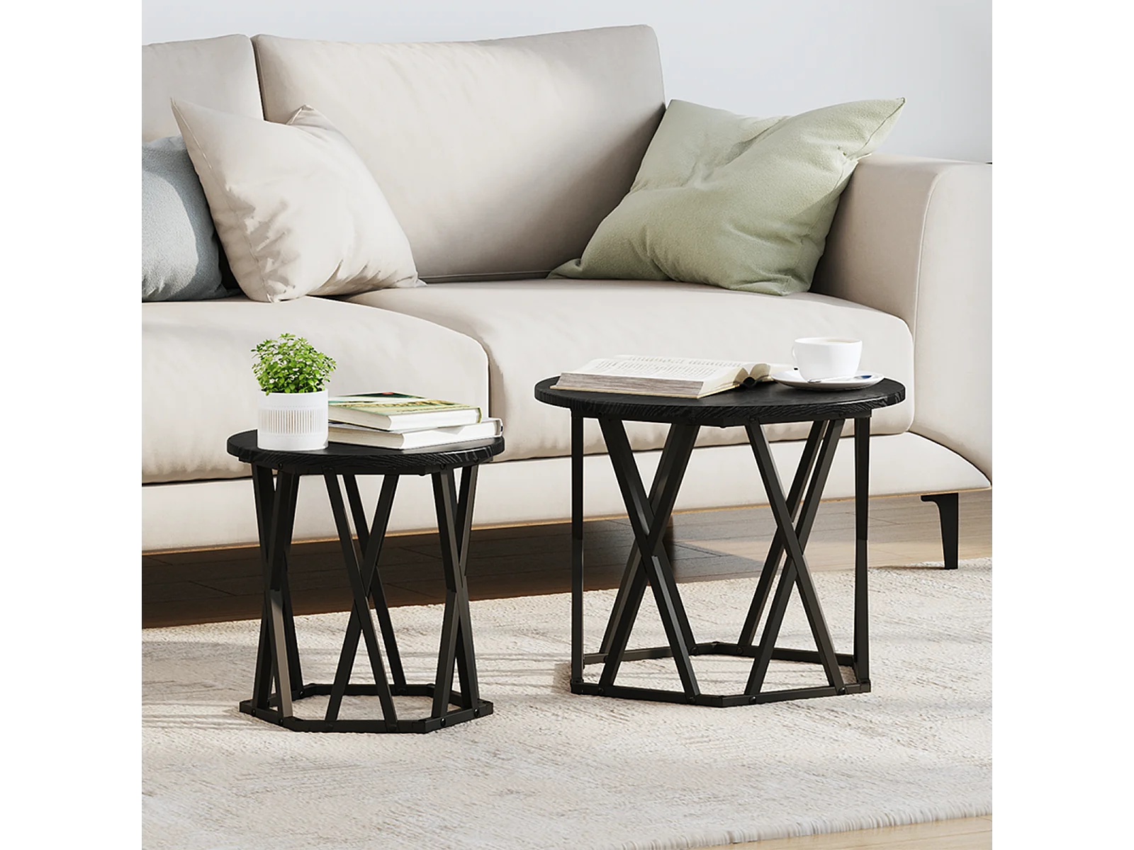 Mesas auxiliares apilables 2 piezas Madera de roble negro