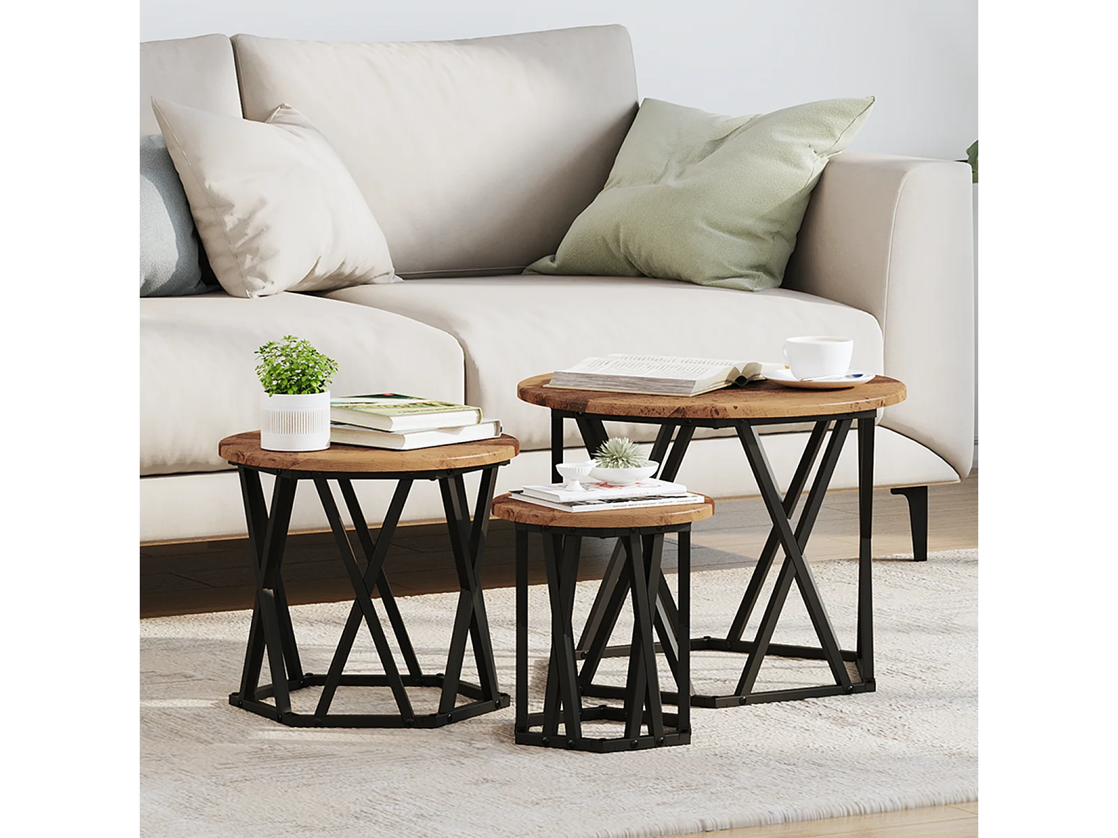 Mesas auxiliares apilables de 3 piezas fabricadas en madera reciclada y laminada