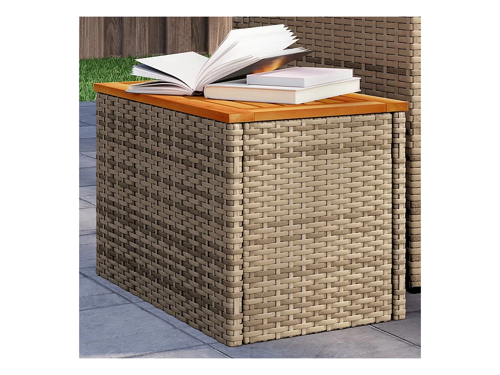 Mesa auxiliar de jardín con tablero de madera beige 58x27,5x55 cm
