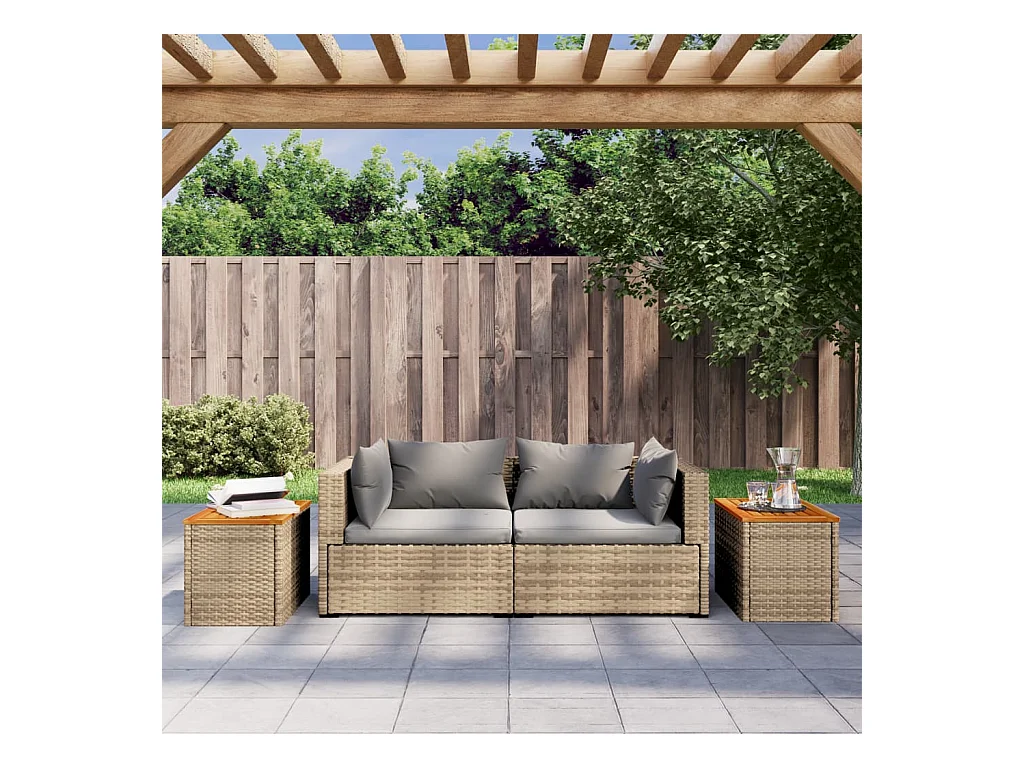 Mesas auxiliares de jardín 2 piezas ratán beige madera maciza