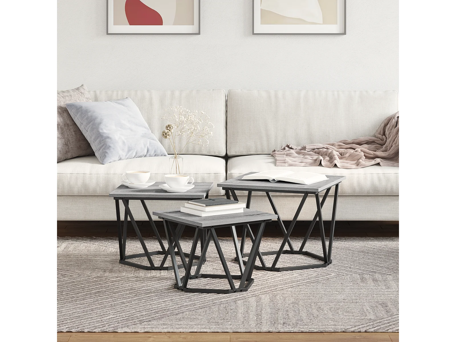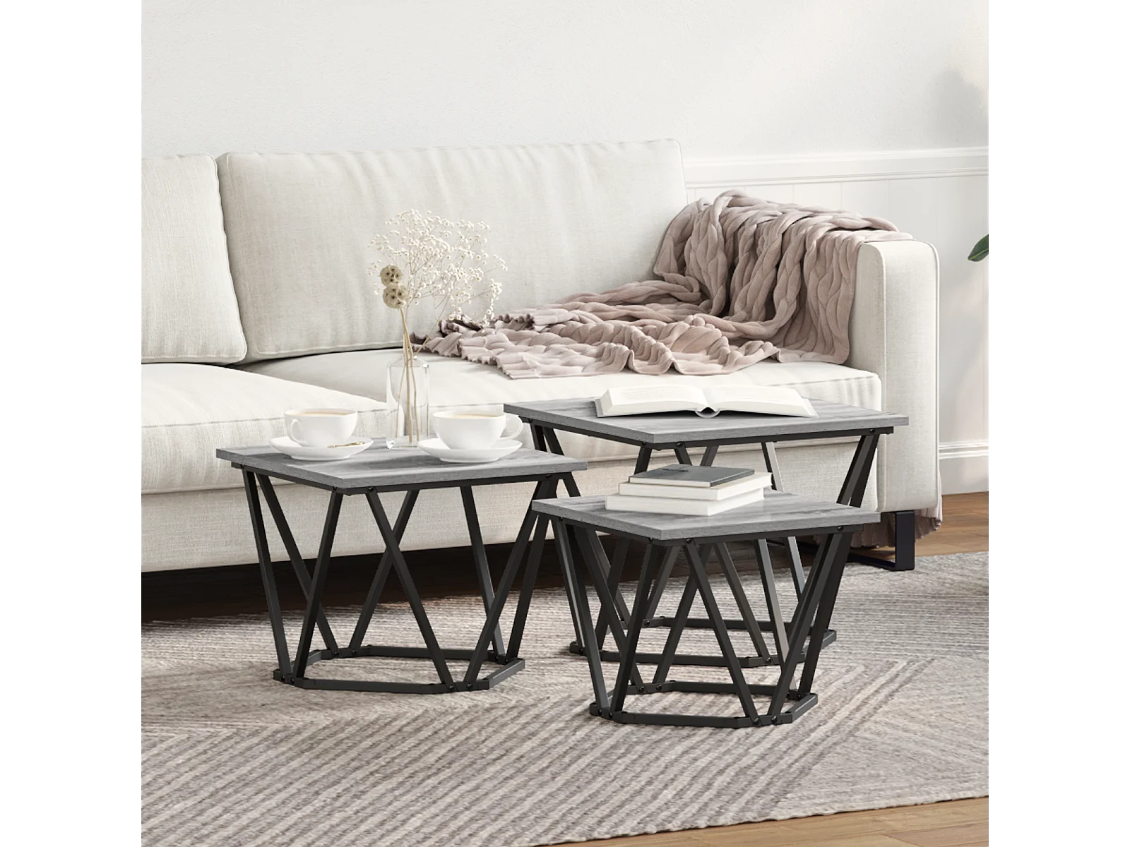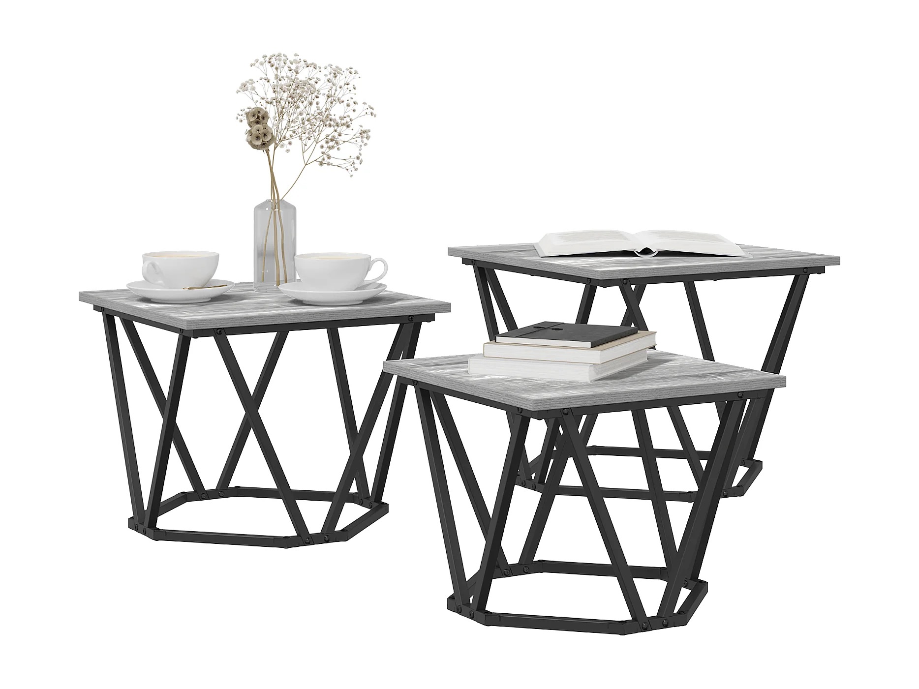 Mesas auxiliares de madera de ingeniería gris Sonoma de 3 piezas