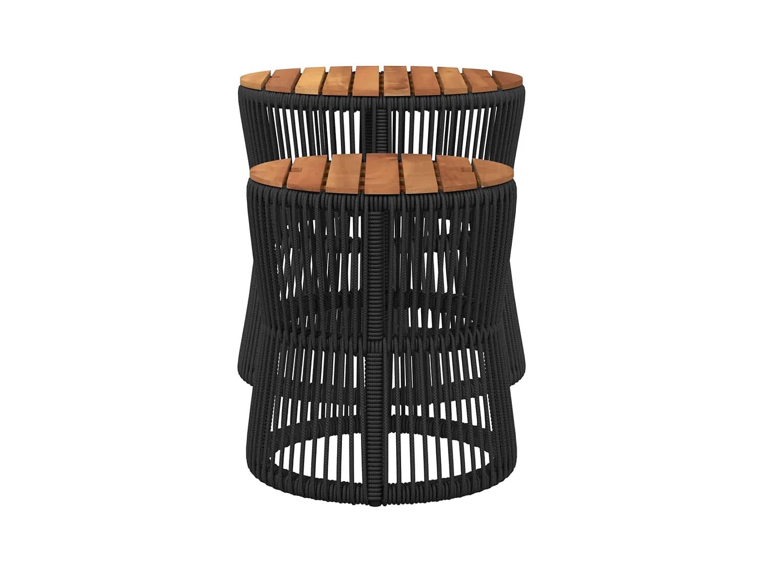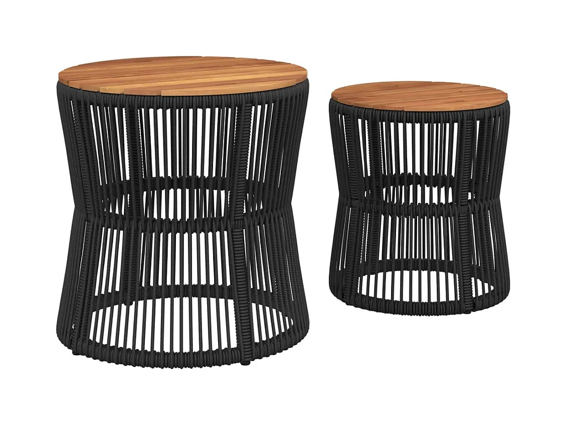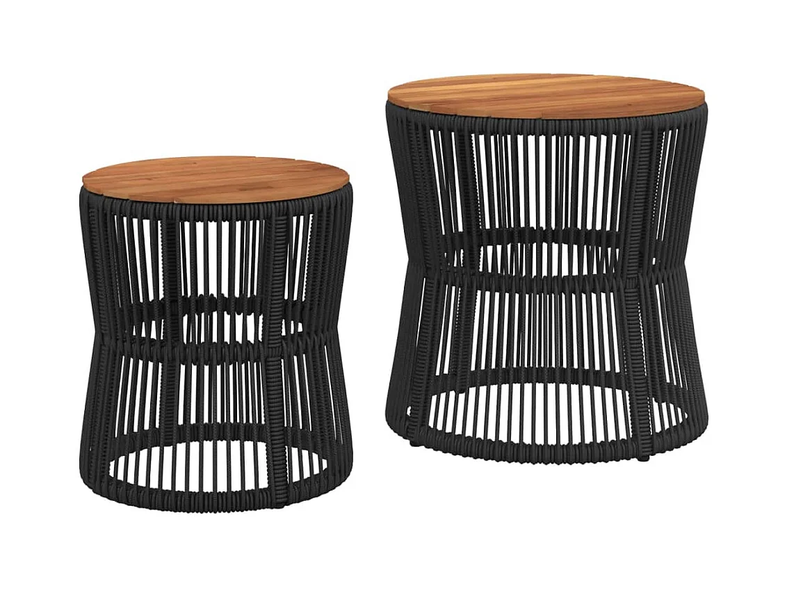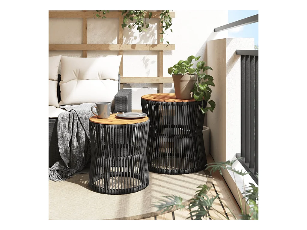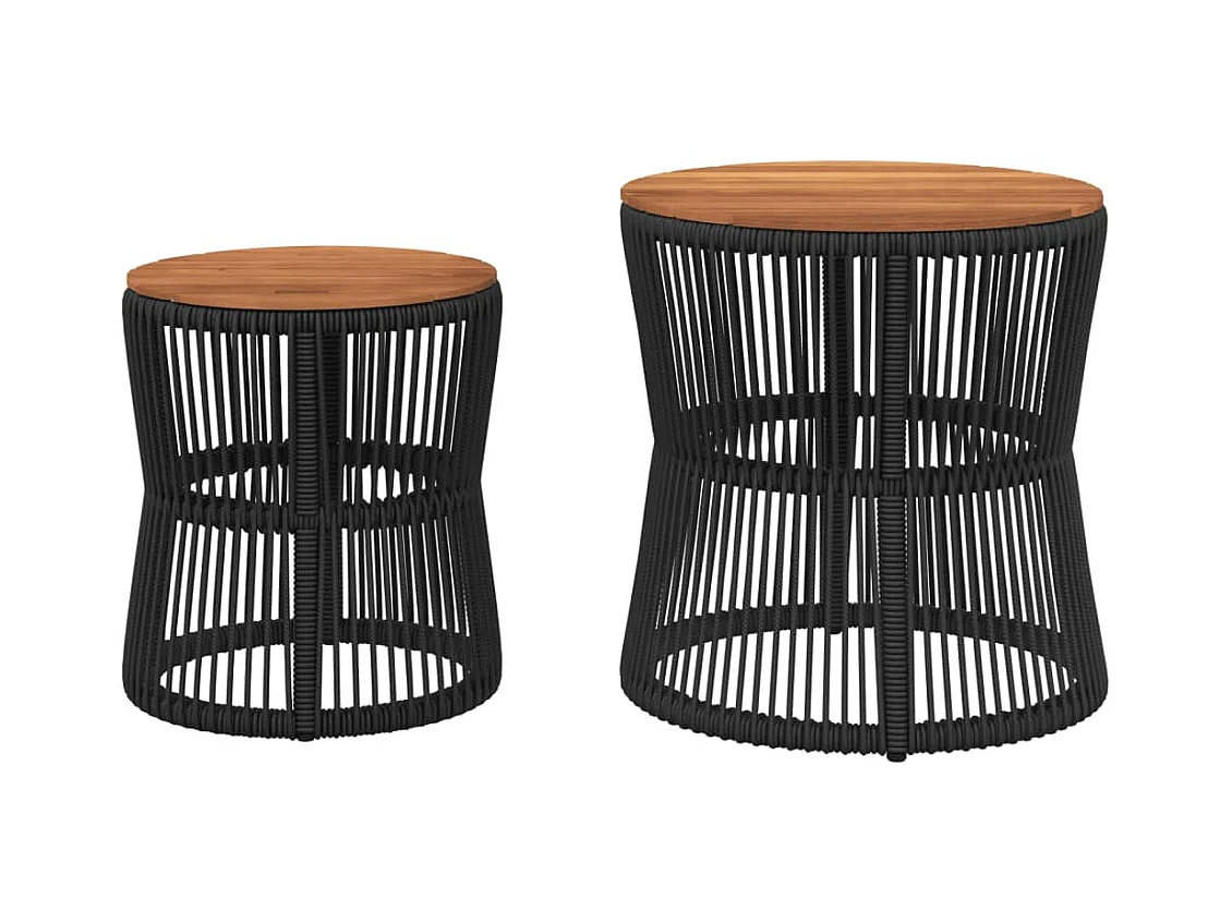 Mesas auxiliares jardín 2 pzas superficie de madera ratán negro