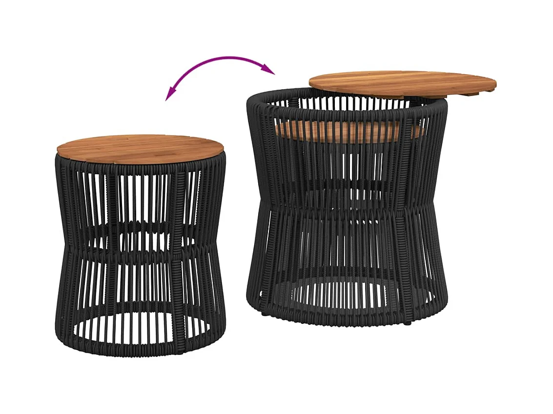 Mesa jardín negra 100x50x43/63 cm madera maciza acacia y ratán