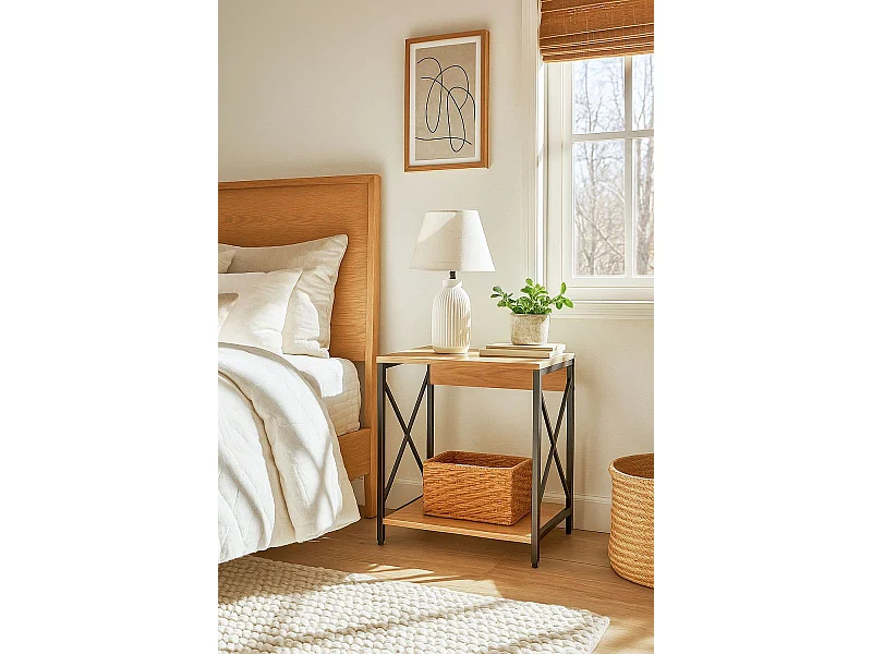 Mesita de noche Craft color roble hamilton/negro mate 48x36x45 cm.