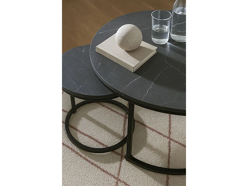 Mesas Auxiliares - Set 2 Mesas Centro Renty - Mármol Negro