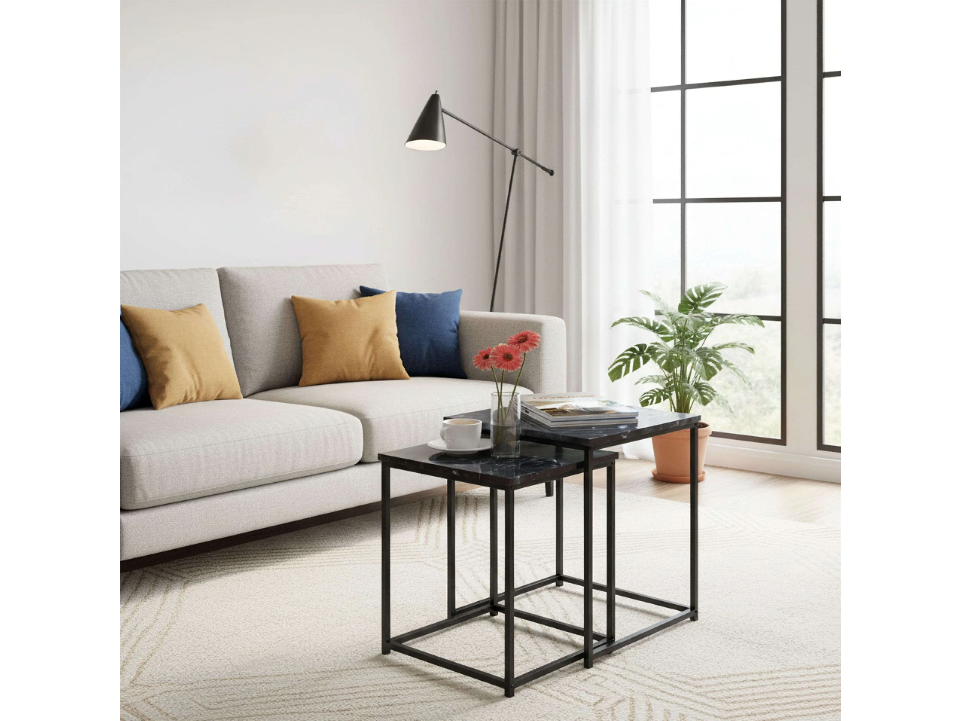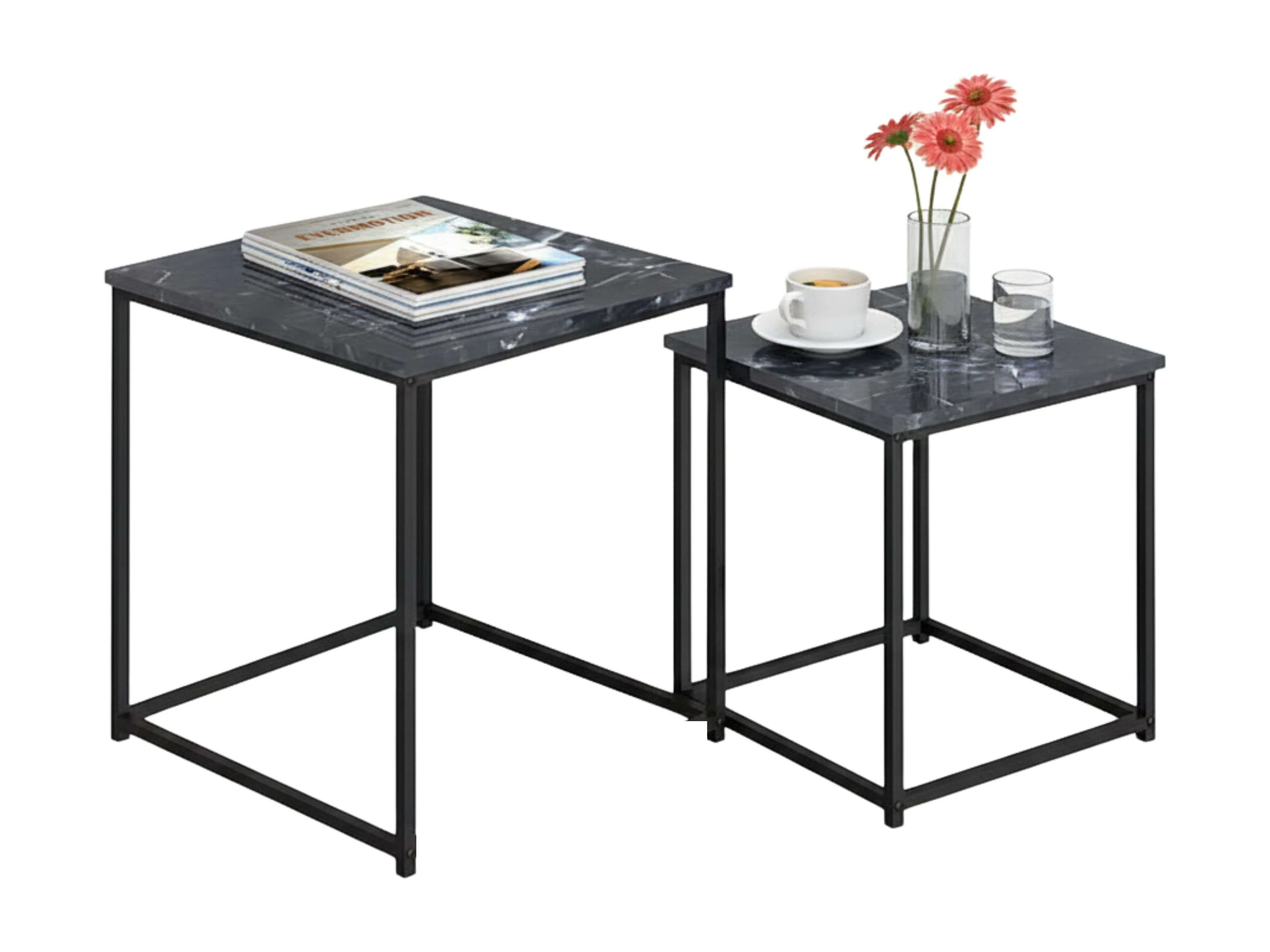 Mesas centro auxiliares 2 niveles negro y gris 40x50x40 cm y 35x45x35 cm