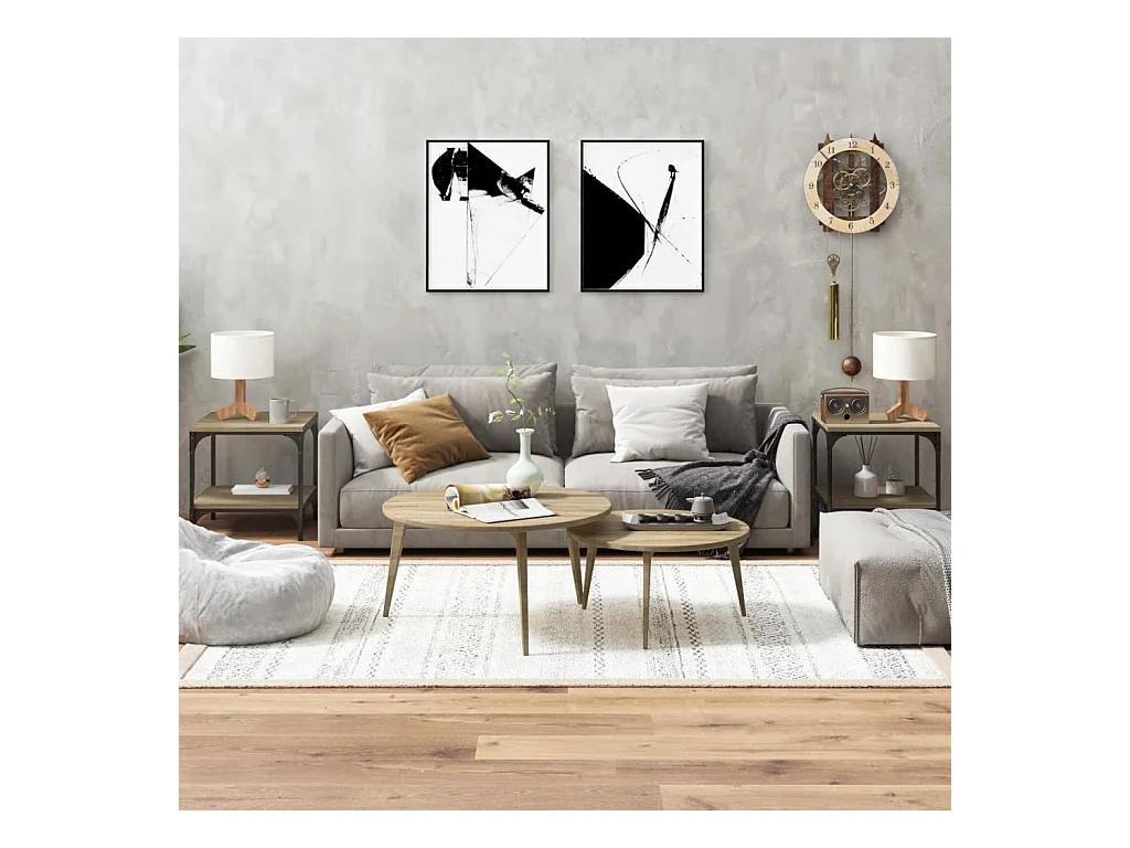 Mesas de centro 2 uds contrachapada roble ahumado 40x40x40 cm ES40455
