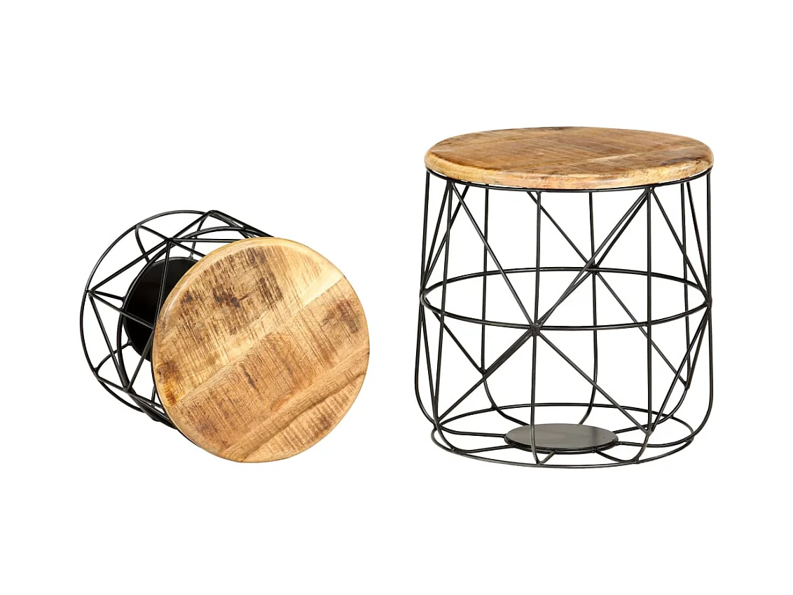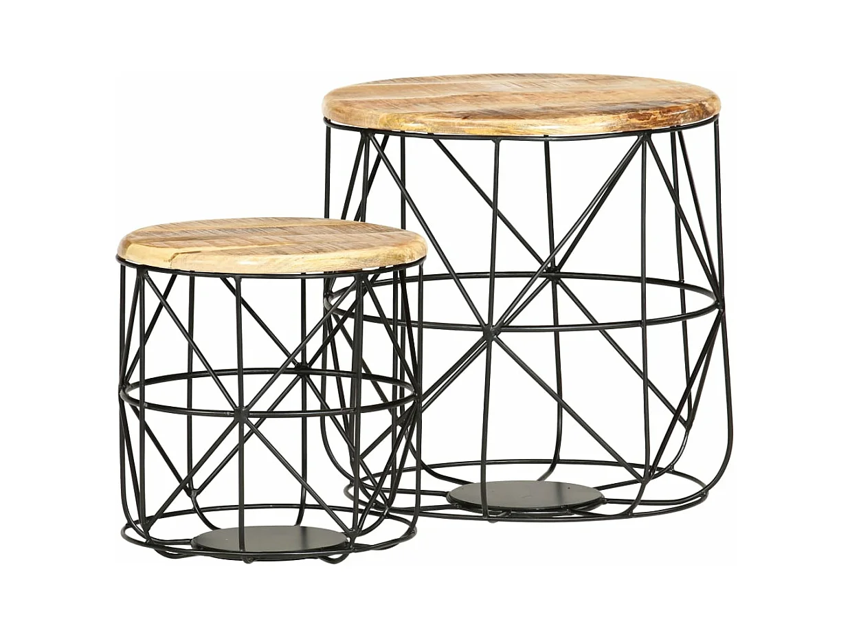 Mesas apilables 2 unidades madera rugosa de mango