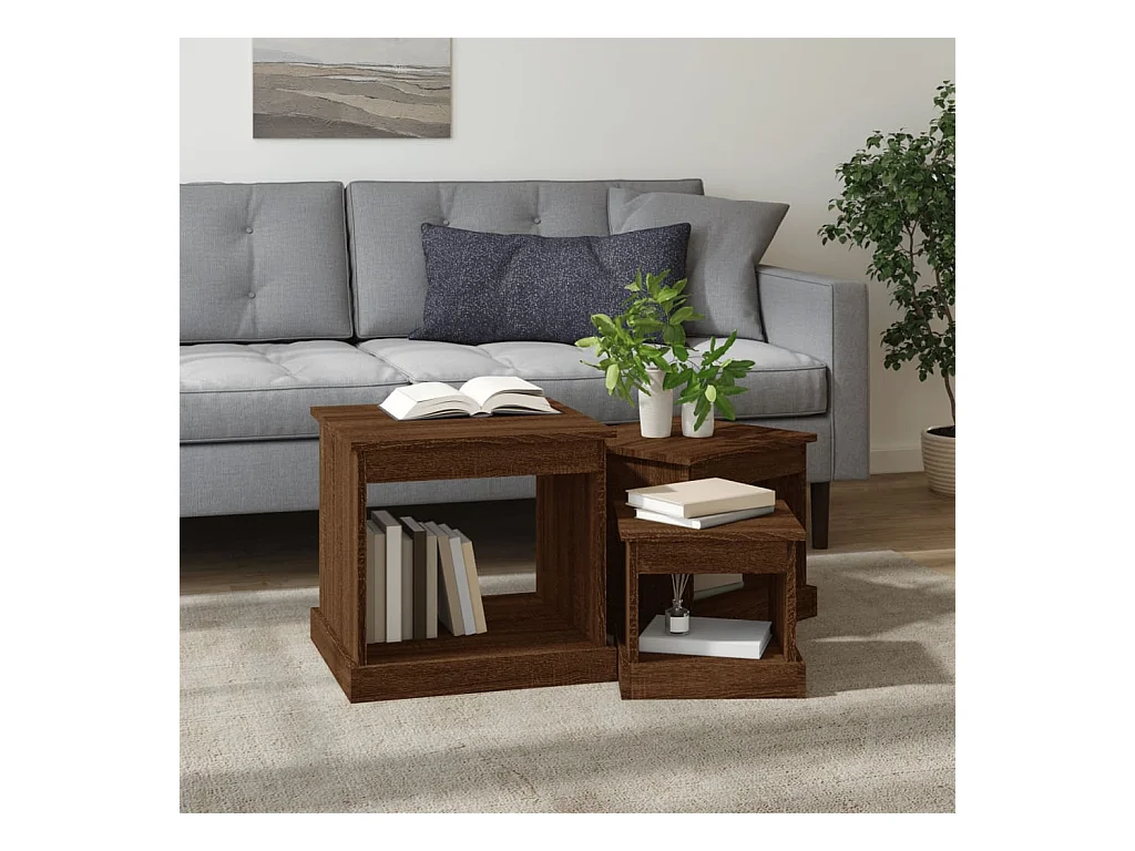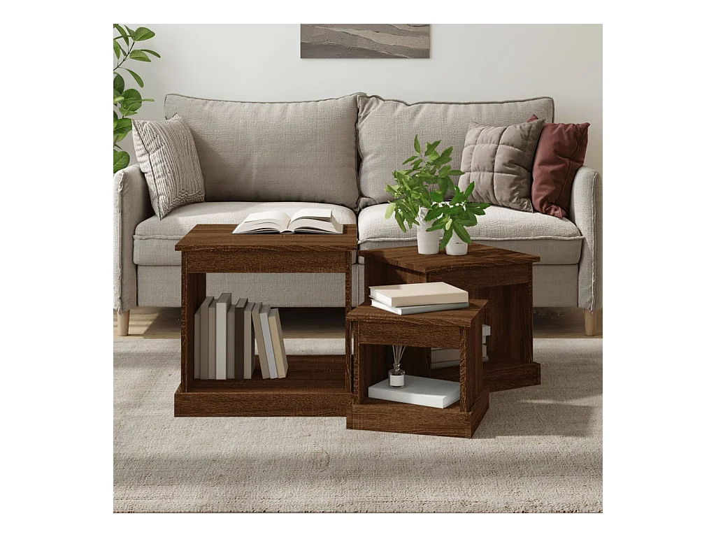 Mesas de centro 3 uds madera de ingeniería marrón roble ES605540