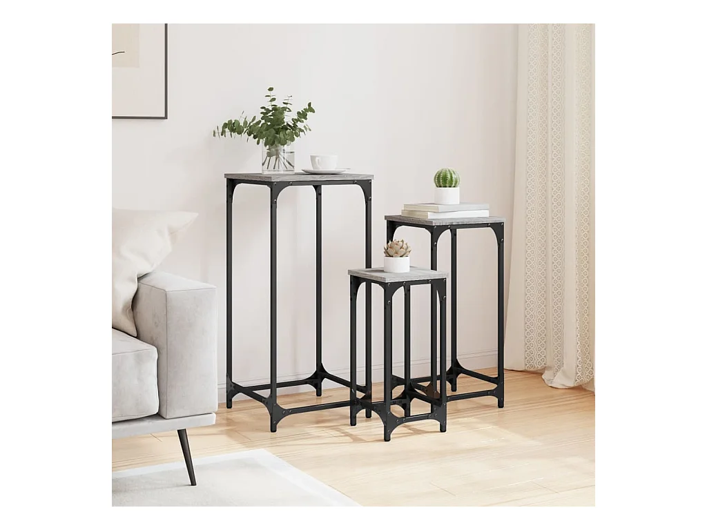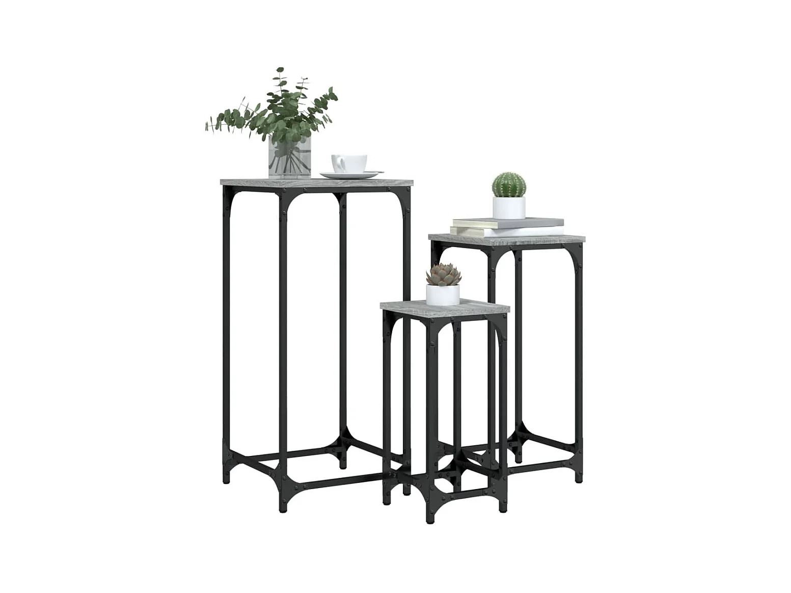 Mesas de centro apilables 3 pzas madera ingeniería gris Sonoma ES225808