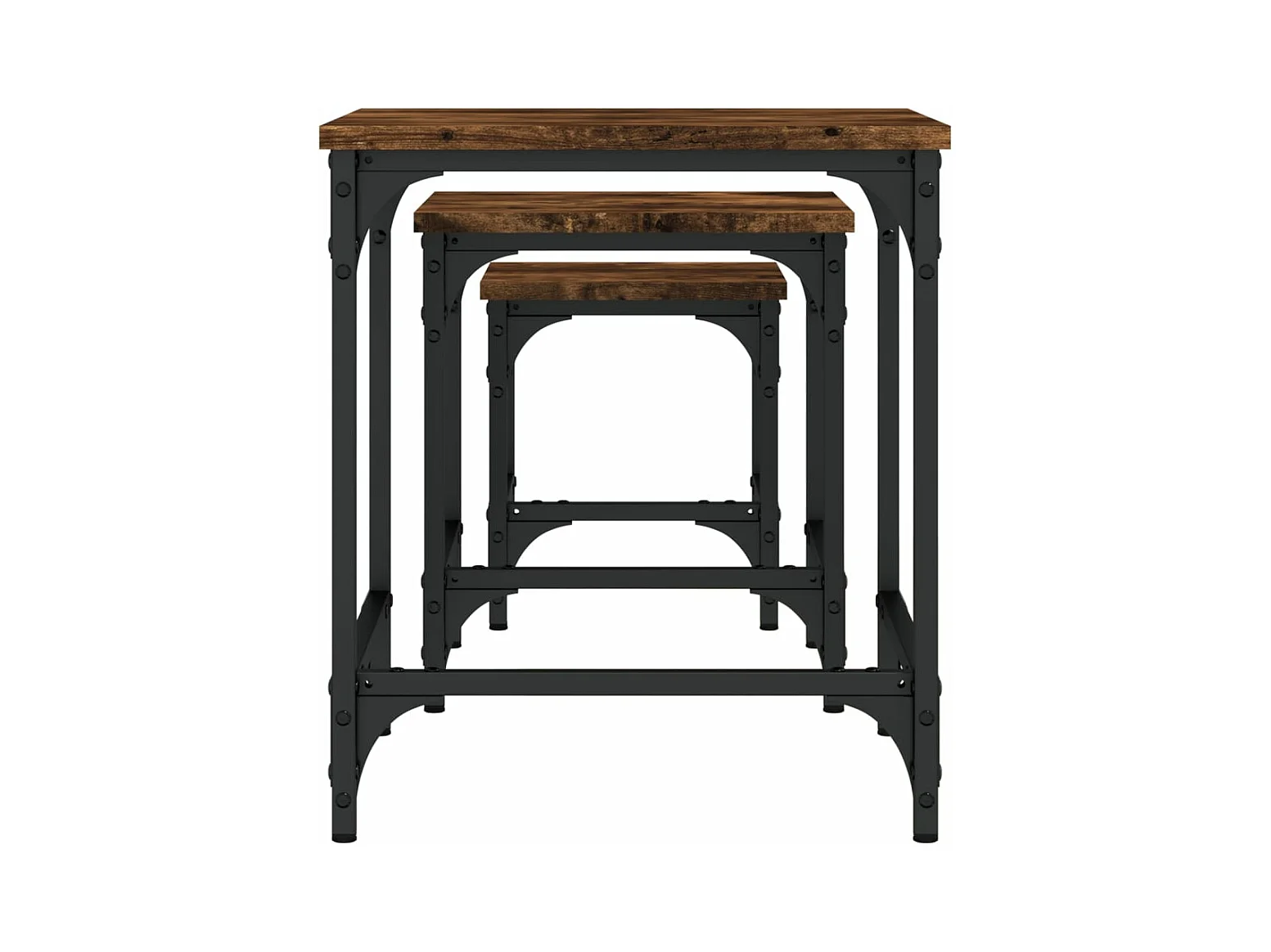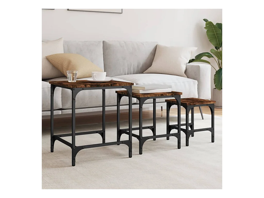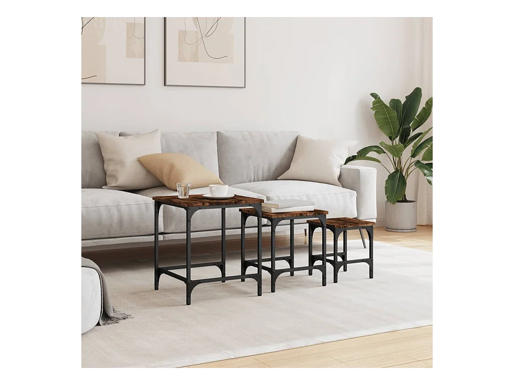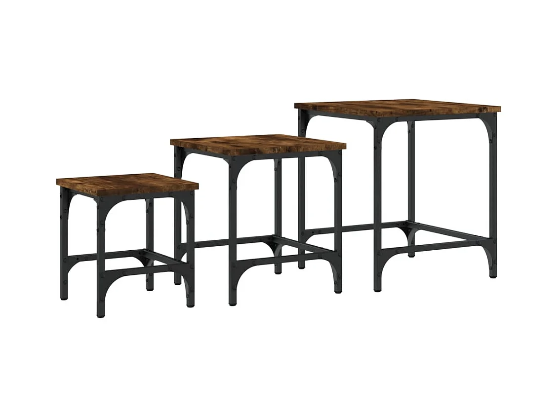Mesas de centro apilables 3 pzas madera ingeniería roble humo