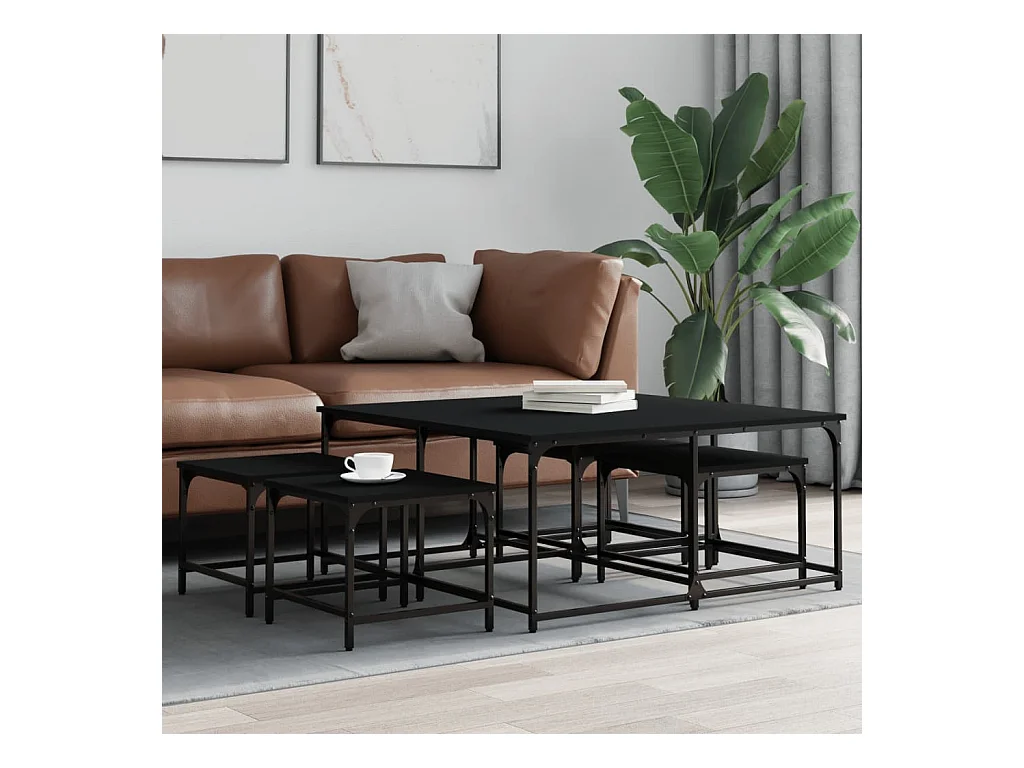 Mesas de centro apilables 5 piezas madera de ingeniería negro ES639490