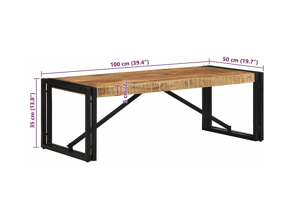 Mesa de centro de madera maciza de mango rugosa 100x50x35 cm
