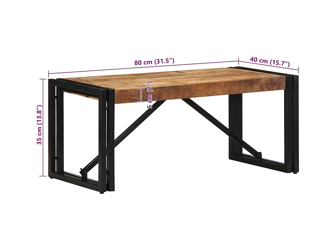 Mesa de centro de madera de mango maciza 80x40x35 cm