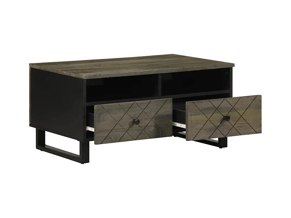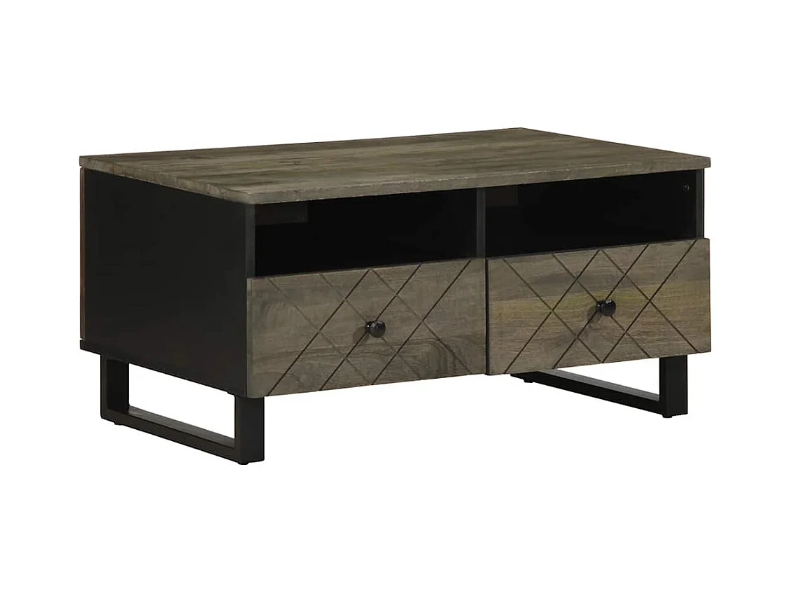 Mesa de centro madera maciza de mango negra 80x54x40 cm ES231724