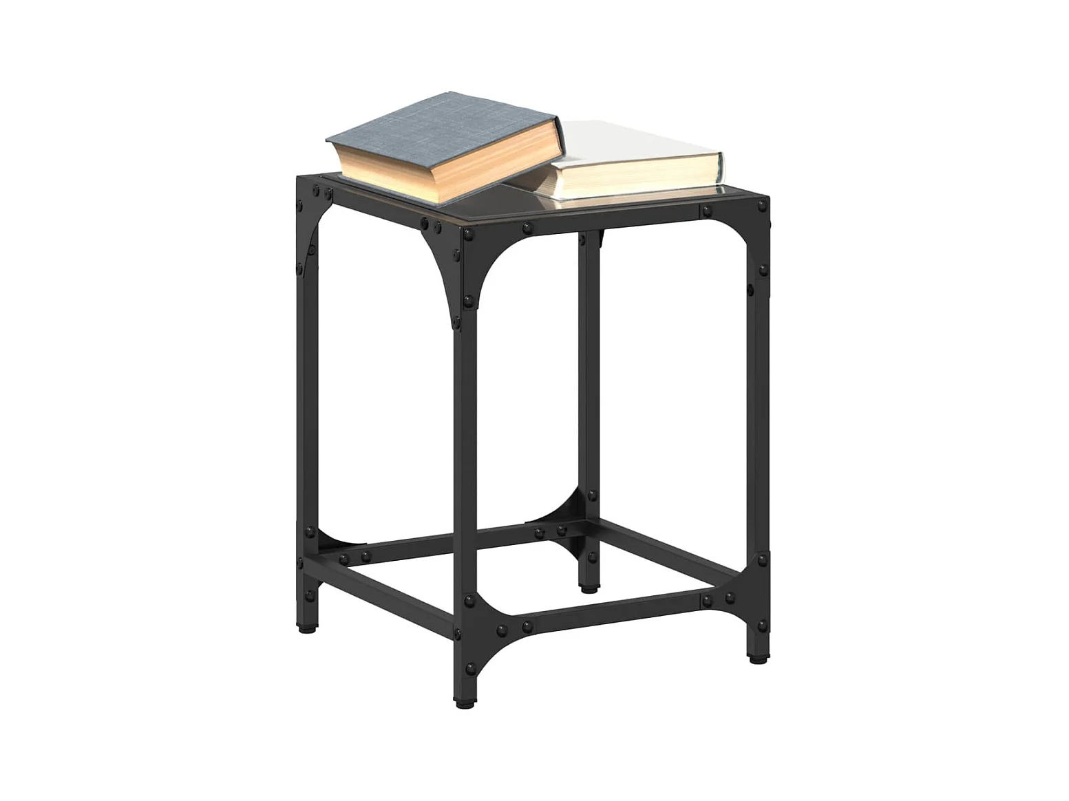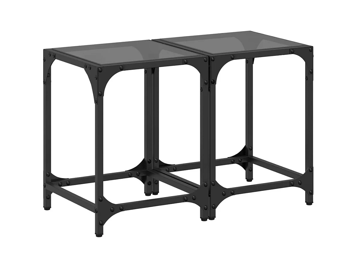 Mesas de centro con tapa de cristal negro 2 uds 30x30x45 cm acero