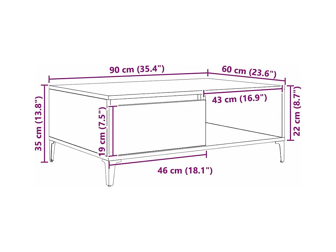 Mesa de centro de roble Sonoma 90x60x35 cm madera de ingeniería