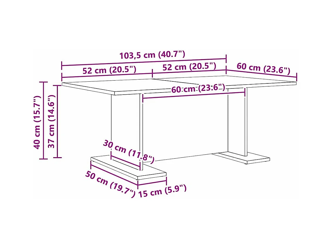 Mesa de centro de roble Sonoma 103,5x60x40 cm madera de ingeniería