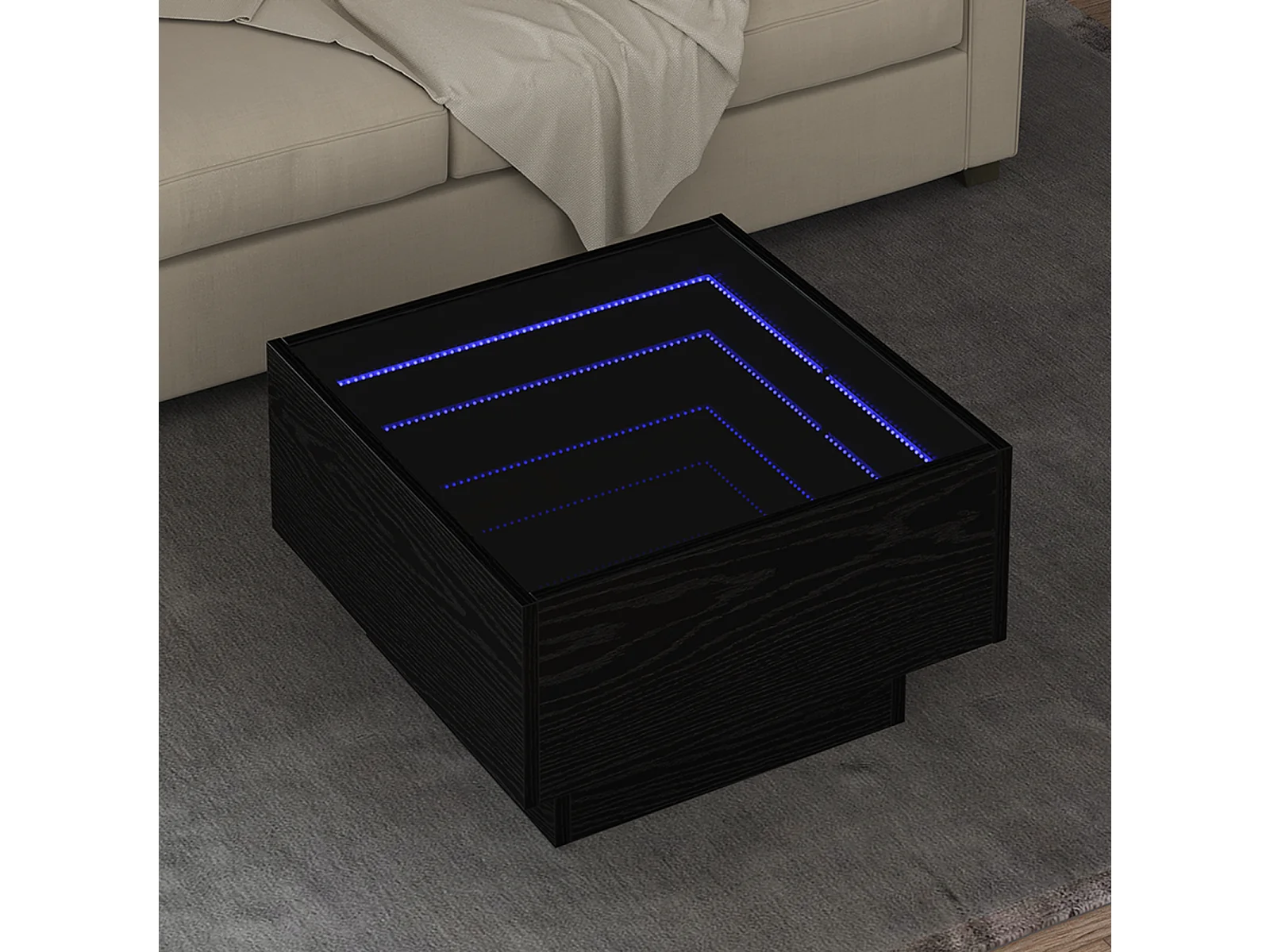 Mesa de centro - 100 x 50 x 30 cm - con LED + 2 puertas - cristal templado + aglomerado - negro
