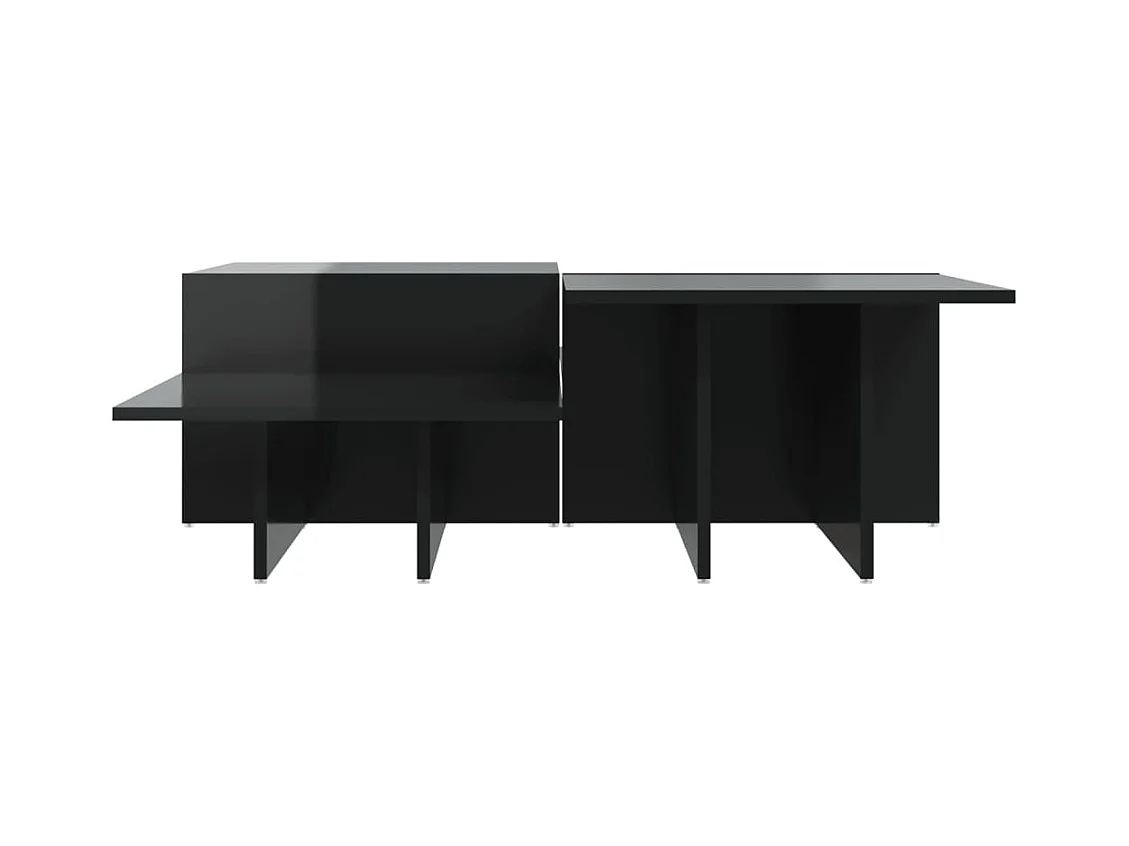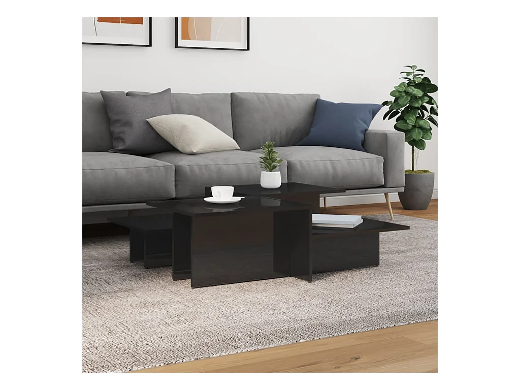 Mesa de centro brillante - 94 x 50 x 34 cm - con 2 cajones + almacenaje + puerta de cristal - aglomerado - negro